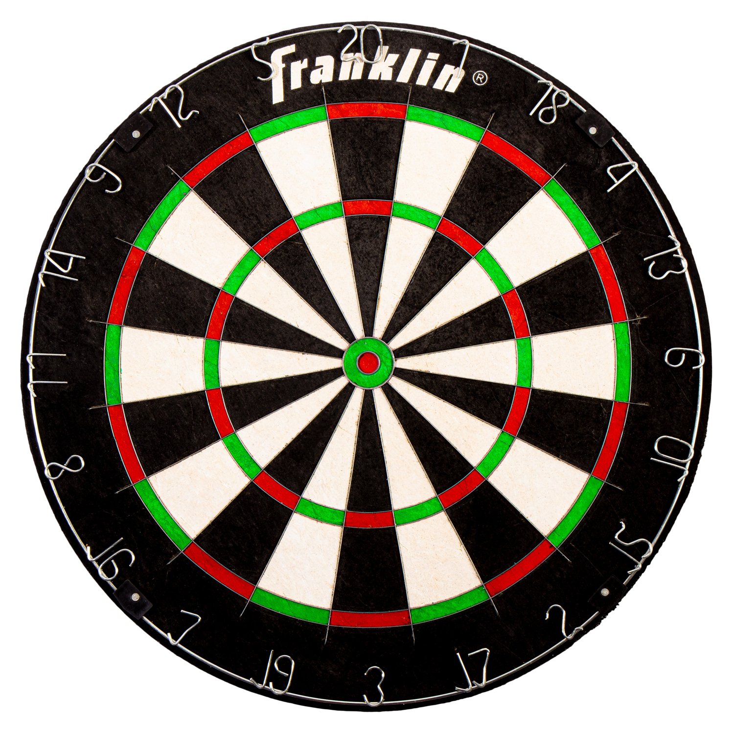 Shoot your shot with the Franklin Sports Grade A Professional Dartboard. Made from high-quality sisal for durable use and a strong dart hold, this board features a rotating number wheel to allow varied, unique games. The dividing blades are ultra-thin and low profile to avoid blocking your shot, and the easy-mounting bracket allows out-of-the-box play.