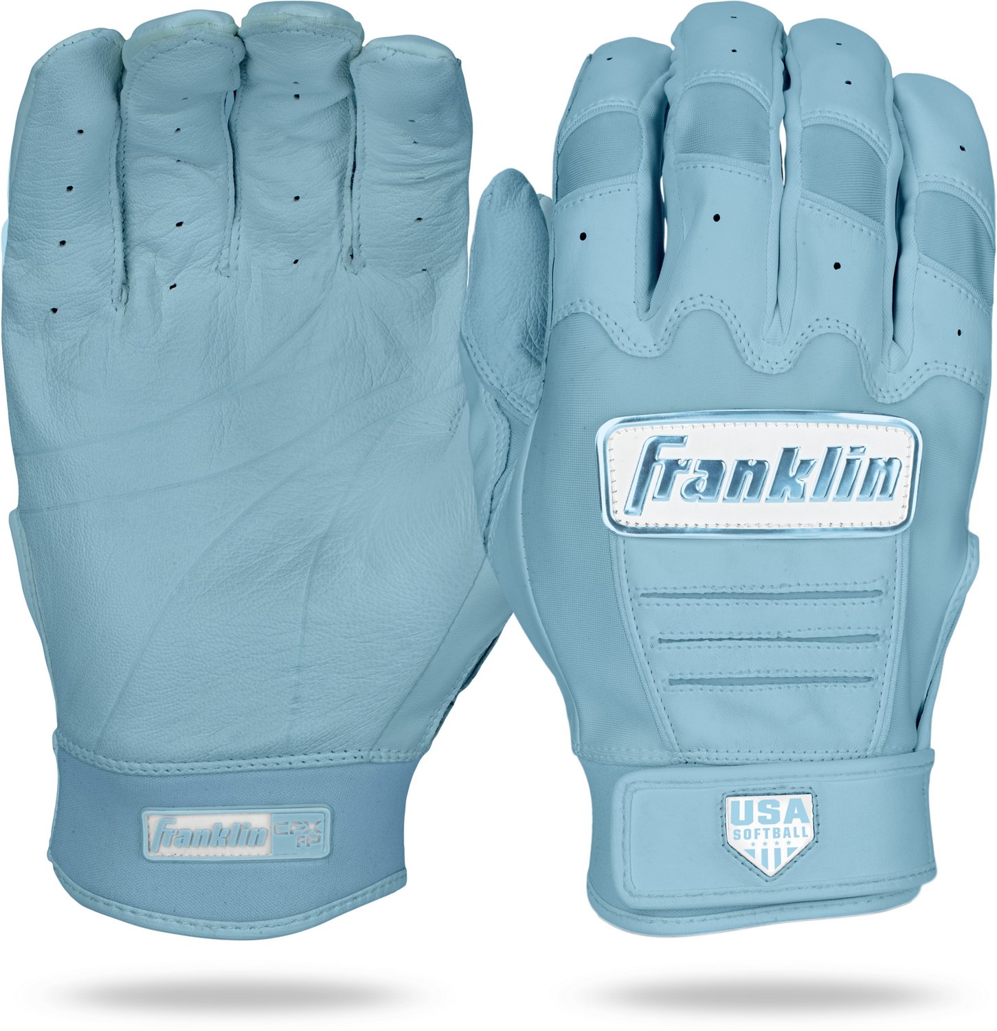 Franklin Sports is bringing its time-honored classic batting gloves to the world of fastpitch and slowpitch softball and changing the game for good with the all-new CFX FP - USA batting gloves. These are the first batting gloves from Franklin Sports to be specifically designed and built to fit the contours of the female hand so women and girls can enjoy increased comfort and performance at the plate. Constructed with the same premium quality leather as our CFX Pro model, the CFX FP is designed to bring the same level of performance exhibited by our MLB pros to softball diamonds across the country. As the official batting glove of USA Softball, the CFX FP is made to play at the highest level with unmatched durability to last season after season. Bring your softball game to the next level today with the glove built for you. Change the game and grab your pair of CFX FP batting gloves today!