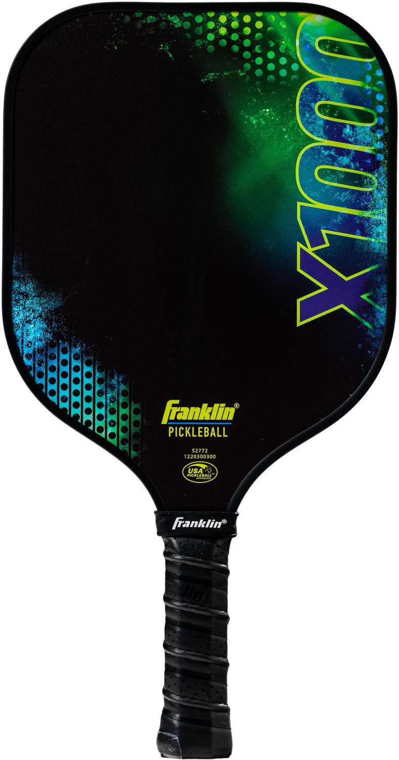 Take your pickleball game to the next level with the USA Pickleball (USAPA) approved Franklin X-1000 Lightweight Pro Pickleball Paddle! This polypropylene core pro pickleball racket is lightweight and designed for high performance. The honeycomb polypropylene core provides a strong, durable construction that is built to last, while only weighing from 7.7 - 8.2 ounces. This lightweight pickleball racket is also constructed with a non-slip, comfort grip that makes it easy to control on the court. The paddle is coated with our MaxGrit fiberglass surface layer, increasing traction on the pickleball for ultimate spin and finesse shots. Complete with a rugged edge protection band, this pickleball racket is built to perform at the highest level year after year. So step up your game and grab yourself the USA Pickleball (USAPA) approved X-1000 Pickleball Paddle today from Franklin Sports!