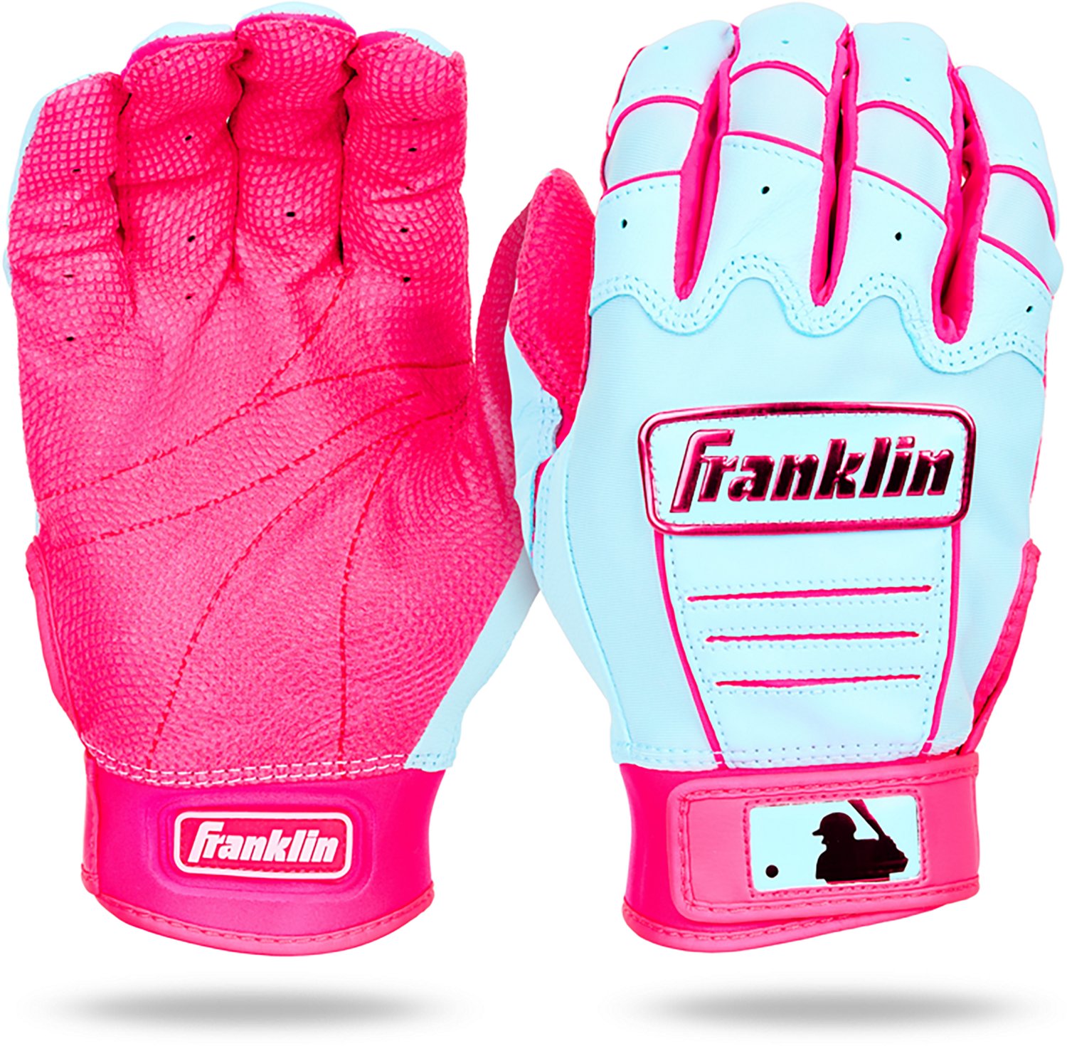As the official batting gloves of the MLB, the CFX Pro is the most popular on field batting glove used by MLB pros. Constructed with premium quality leather, these batting gloves are built to last season after season for baseball and softball players of all ages. Designed to fit the natural curves of your hand, these adult and youth batting gloves are made to fit comfortably without bunching or tearing. Tectonic inserts in the handback help these batting gloves maintain flexibility for a snug and flexible fit. The rugged leather palm helps players maintain grip on the bat in all weather conditions for increased bat control and superior performance. These batting gloves are the standard for baseball and softball players at the highest levels. Play like the pros this season and grab yourself a pair of Franklin Sports CFX Pro batting gloves today!