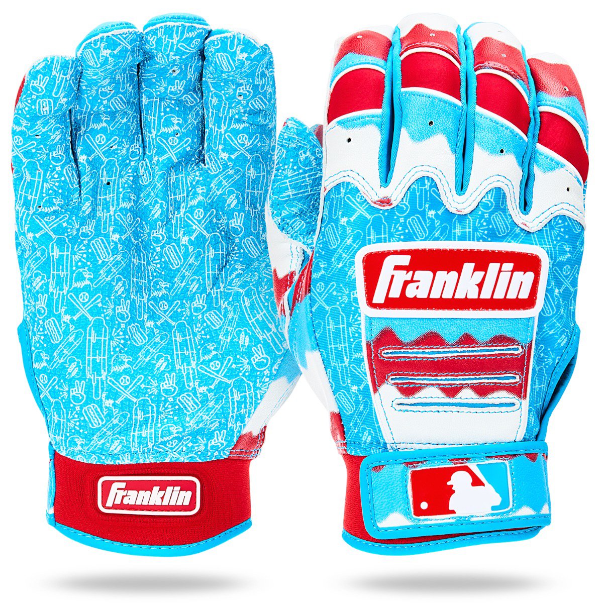 As the official batting gloves of the MLB, the CFX Pro is the most popular on field batting glove used by MLB pros. Constructed with premium quality leather, these batting gloves are built to last season after season for baseball and softball players of all ages. Designed to fit the natural curves of your hand, these adult and youth batting gloves are made to fit comfortably without bunching or tearing. Tectonic inserts in the handback help these batting gloves maintain flexibility for a snug and flexible fit. The rugged leather palm helps players maintain grip on the bat in all weather conditions for increased bat control and superior performance. These batting gloves are the standard for baseball and softball players at the highest levels. Play like the pros this season and grab yourself a pair of Franklin Sports CFX Pro batting gloves today!