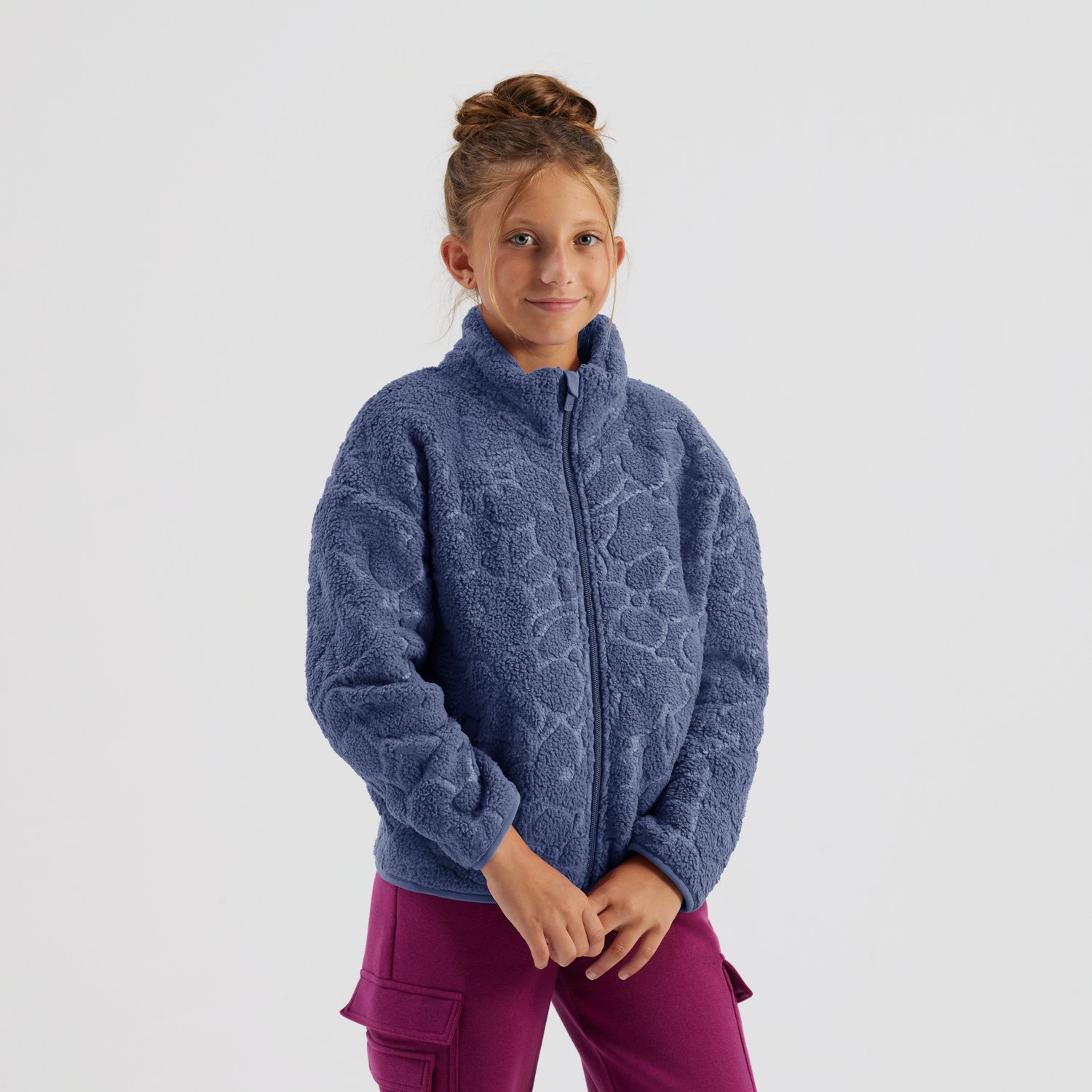 The Freely Girls’ Amelia Embossed Full Zip Sherpa Jacket wraps her in cozy warmth with a soft, plush feel that’s perfect for chilly days. Designed with an embossed texture that adds a stylish twist, this jacket combines comfort and flair for a look she’ll love to wear everywhere. With its full-zip front and relaxed fit, it’s an easy layering piece that keeps her snug while on the go or relaxing at home.