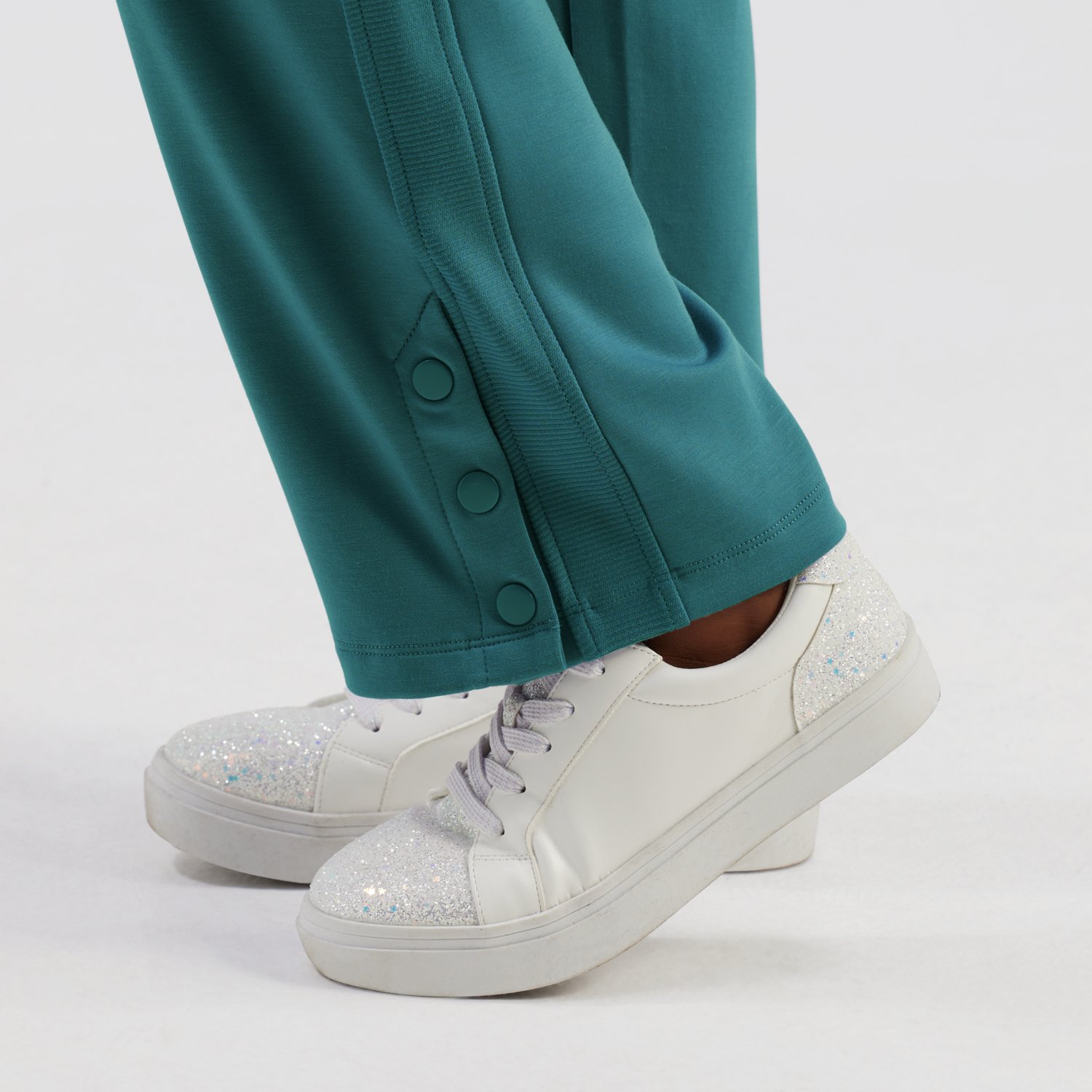 Complete your child's ensemble with these Freely Girls' Blakely Pants as the finishing touch. Comprised of a durable blend of polyester, rayon and Spandex, and featuring a contrast rib side panel, they're as comfortable as they are stylish. Snaps at the bottom hem secure snugly, providing a reliable fit.