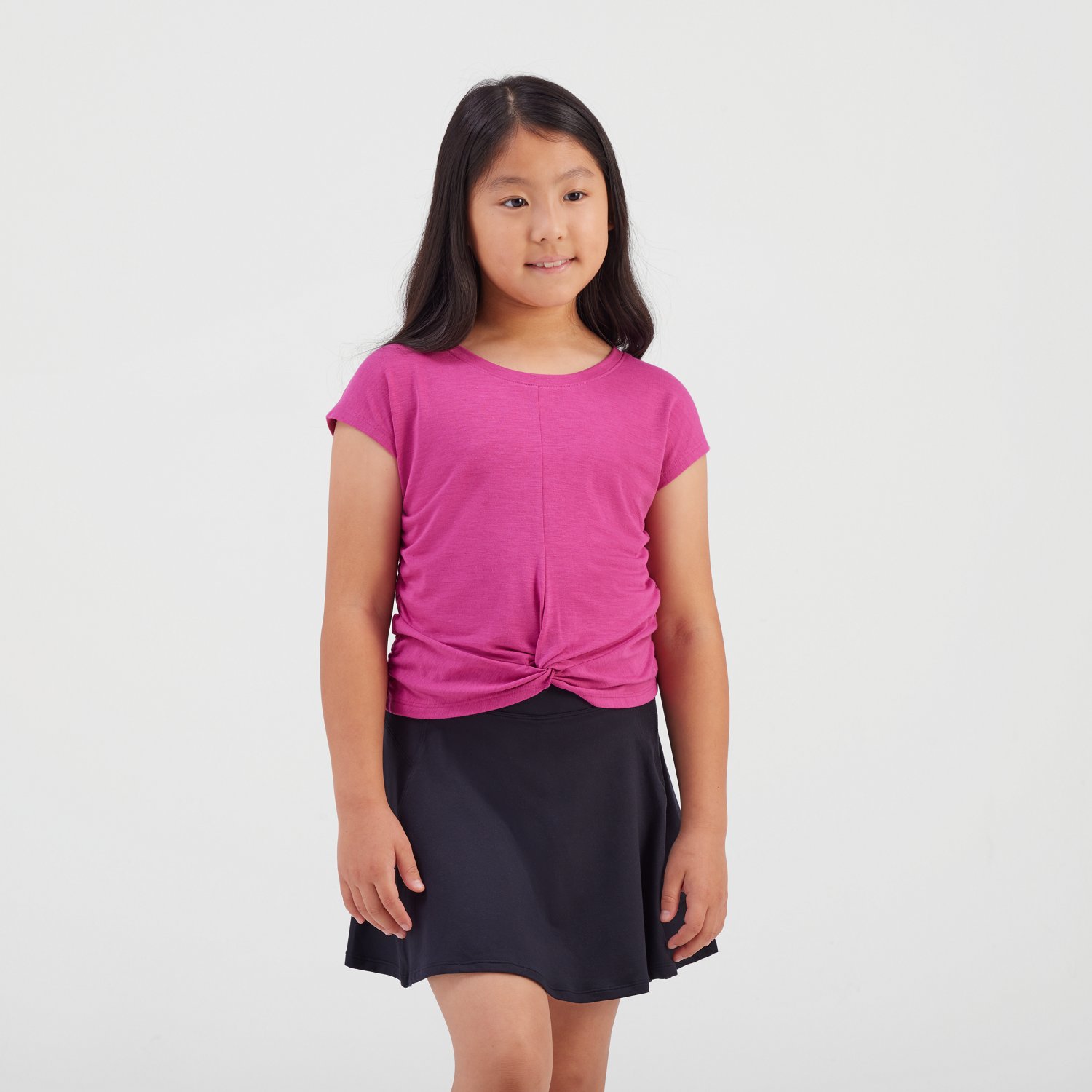 Show off your fun side with the Freely Girls' Demi T-shirt. The polyester blend provides a comfortable feel, while the front twist detail adds a stylish touch.