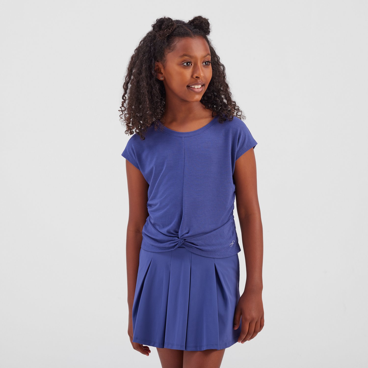 Show off your fun side with the Freely Girls' Demi T-shirt. The polyester blend provides a comfortable feel, while the front twist detail adds a stylish touch.