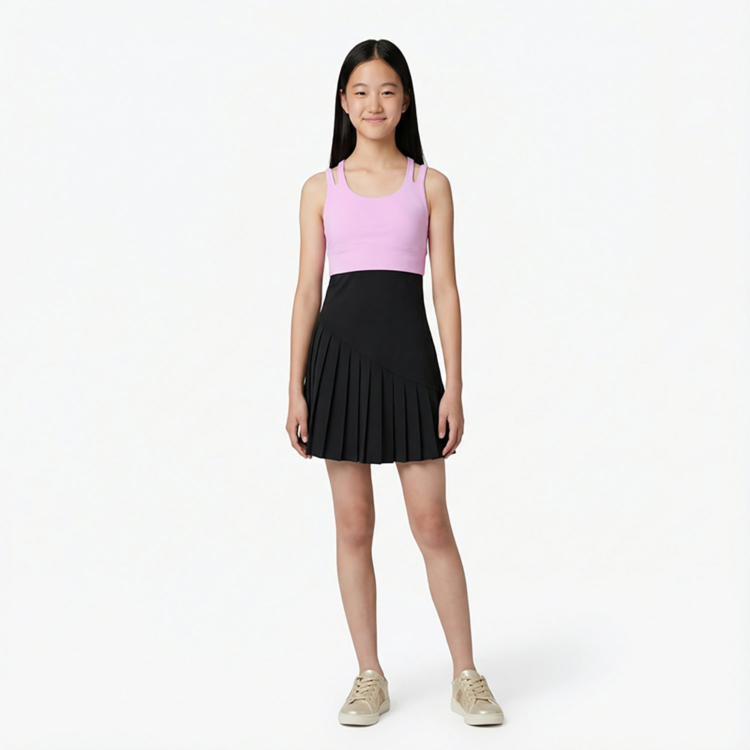 Your young one will feel comfortable and confident with the Freely Girls' James Luxe Sports Bra. The moisture-wicking technology helps keep you dry, and the front strap mini cut out adds a fashionable touch. The strappy back detail delivers a snug and sleek look, and the cami design provides maximum coverage.