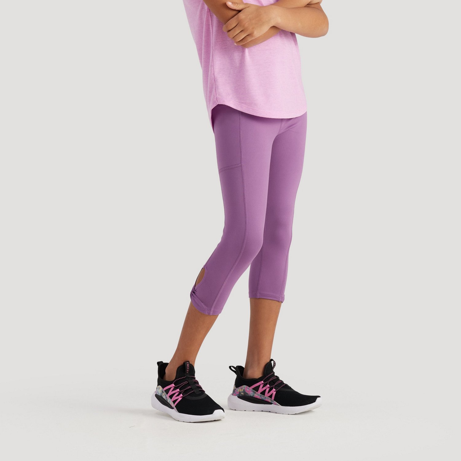 She can head out wearing the Freely Girls' Reign Cropped Capris. Made from recycled polyester and spandex, these capris offer all-day comfort. The high waistband offers coverage.