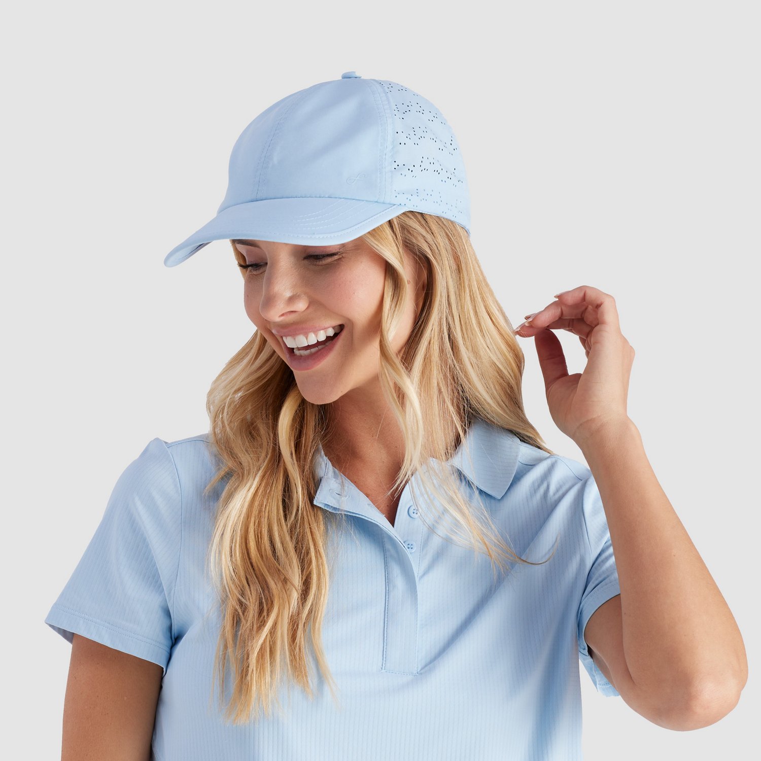 Compliment your favorite outfit with the Freely Women's Anna Cap. The durable polyester material is made with recycled fibers to help reduce global waste. Perforations enhance ventilation, and the hook-and-loop strap adjusts for the perfect fit.