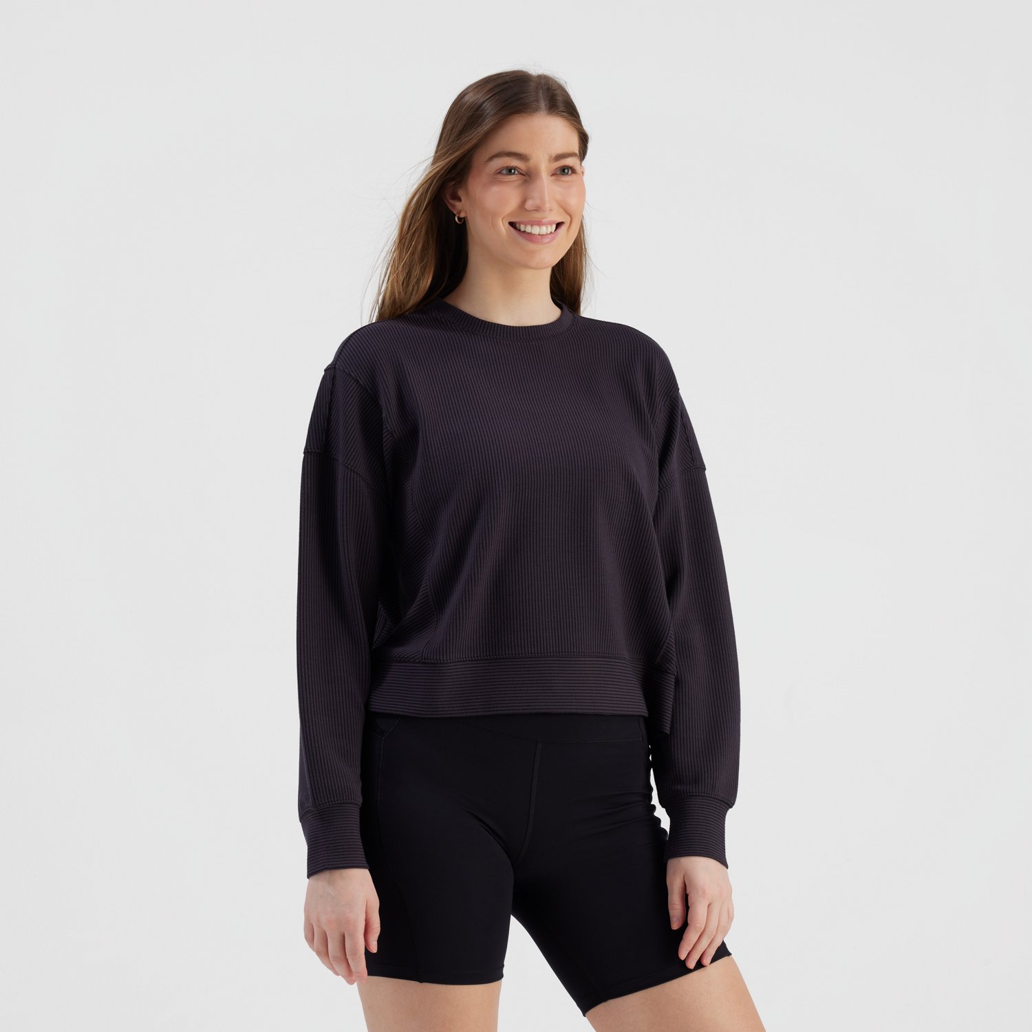 Look your best when you wear the Freely Women's Emily Pullover Sweatshirt. It is made of 56% recycled polyester, 38% rayon, and 6% spandex. The long sleeves keep you warm, and its crew neckline creates a casual look. The side slit ensures you can move freely.