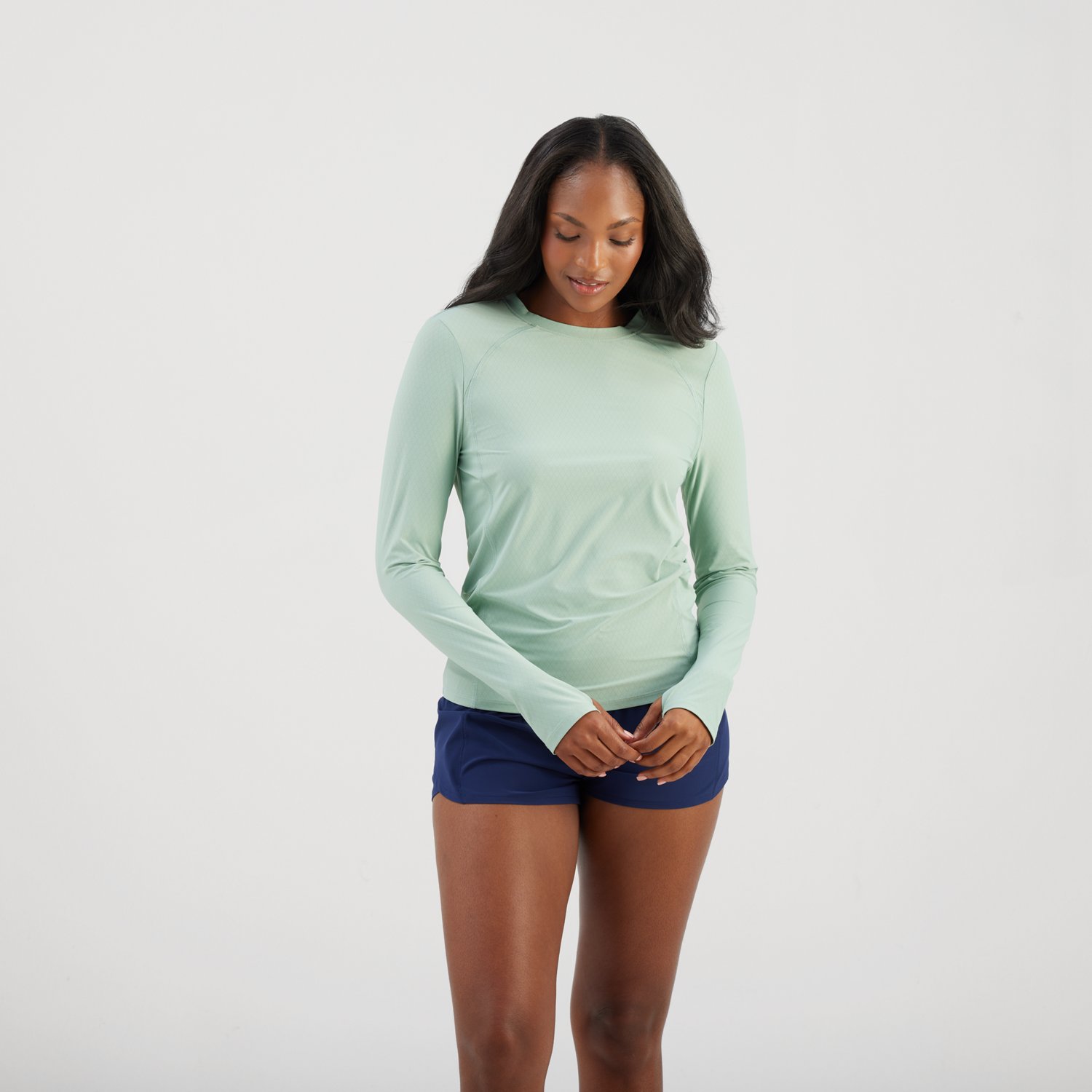 Elevate your active lifestyle with the Freely Women's Escalate Long Sleeve Top. The recycled nylon-spandex material is durable with the right amount of stretch, and the long sleeves feature cozy and stylish thumbhole cuff openings.