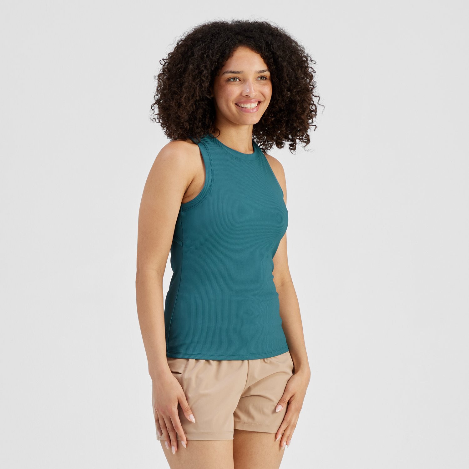 Add another layer to your outfit with the Freely Women's Haven Rib Tank. It is made from 83% recycled polyester and 17% spandex, which is slightly stretchy and easy to clean. The scoop neckline is classically feminine, and its open back detail shows off a modern style. The 25-inch length is perfect for layering.