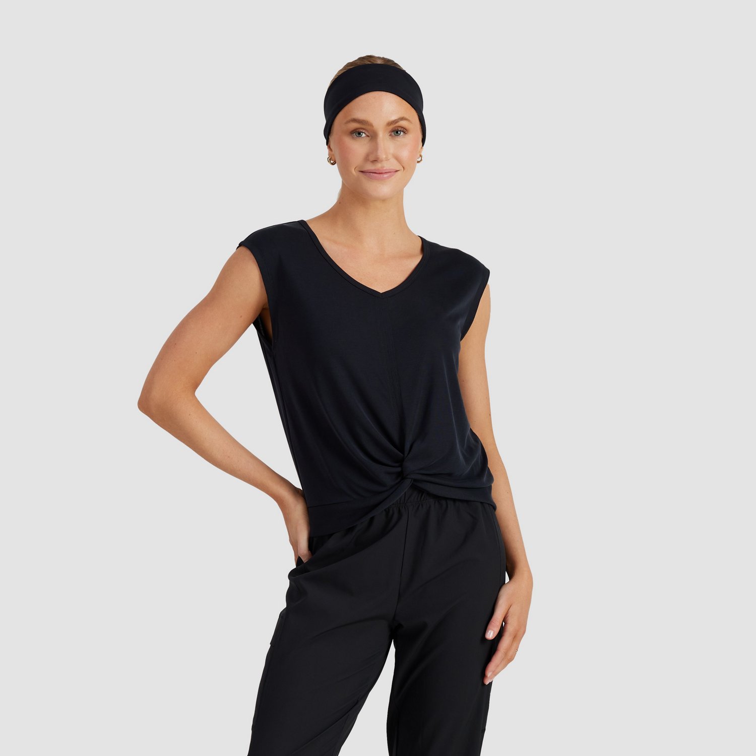 Stay cool and comfortable in the Freely Women's Highline Tank Top. The rayon and polyester blended fabric offers lightweight durability for everyday wear, and the relaxed fit gives you room to move. The front cross detail adds style.