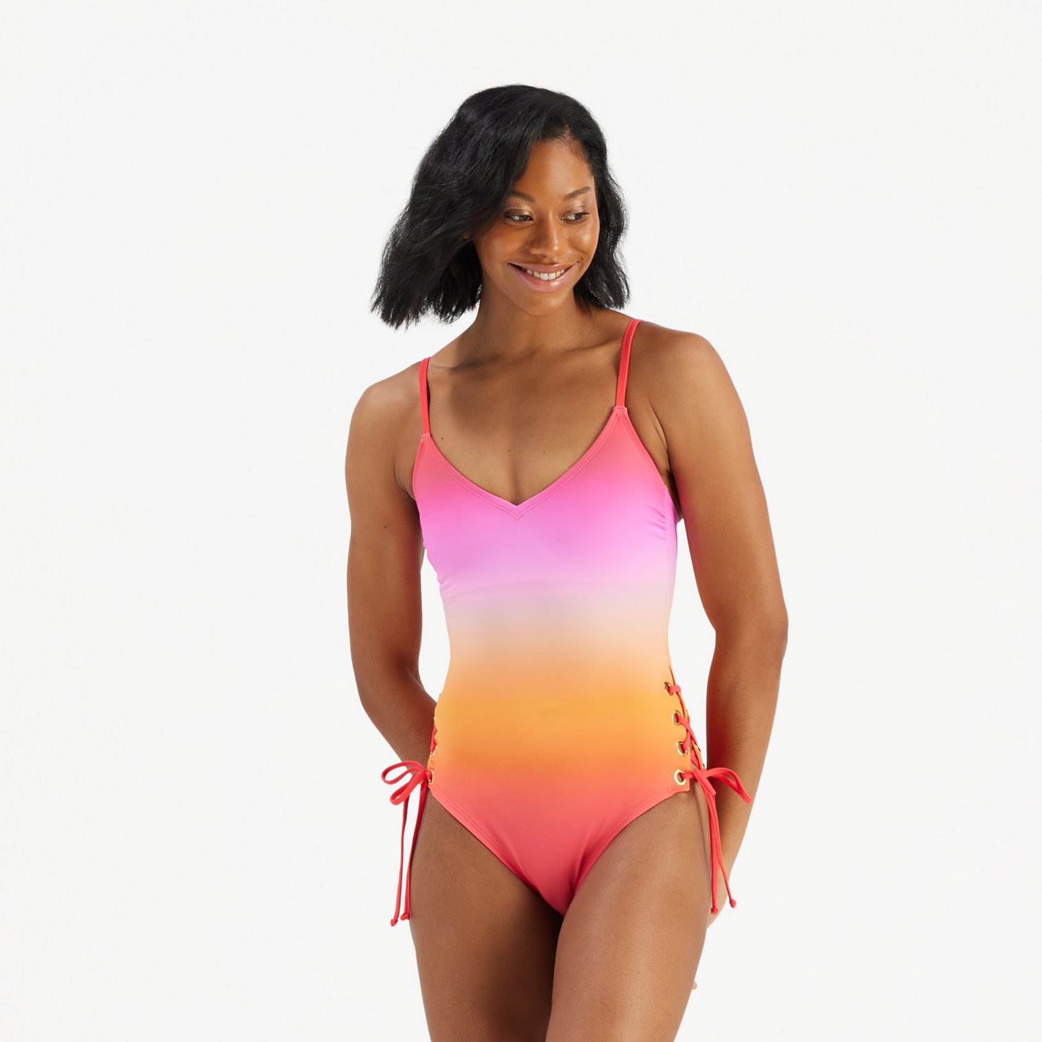 Freely Women's Horizon Ombre Side Grommet Lace Up 1-Piece Swimsuit