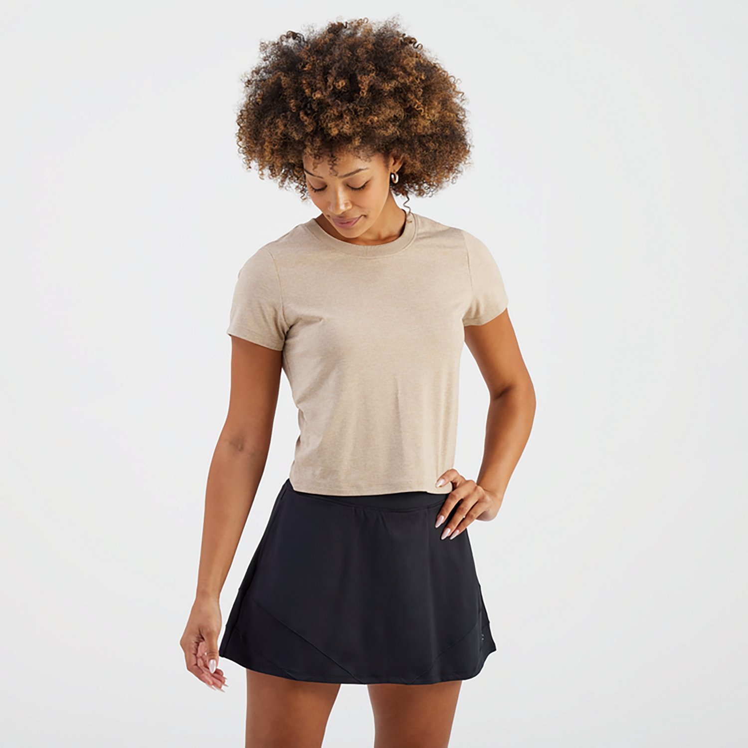Enjoy stylish looks with active comfort with the Freely Women's Kari Short Sleeve T-shirt. The polyester-spandex blend material is stretchy and durable while you move, and the twist-band with cutout detail is stylish and fashionable.