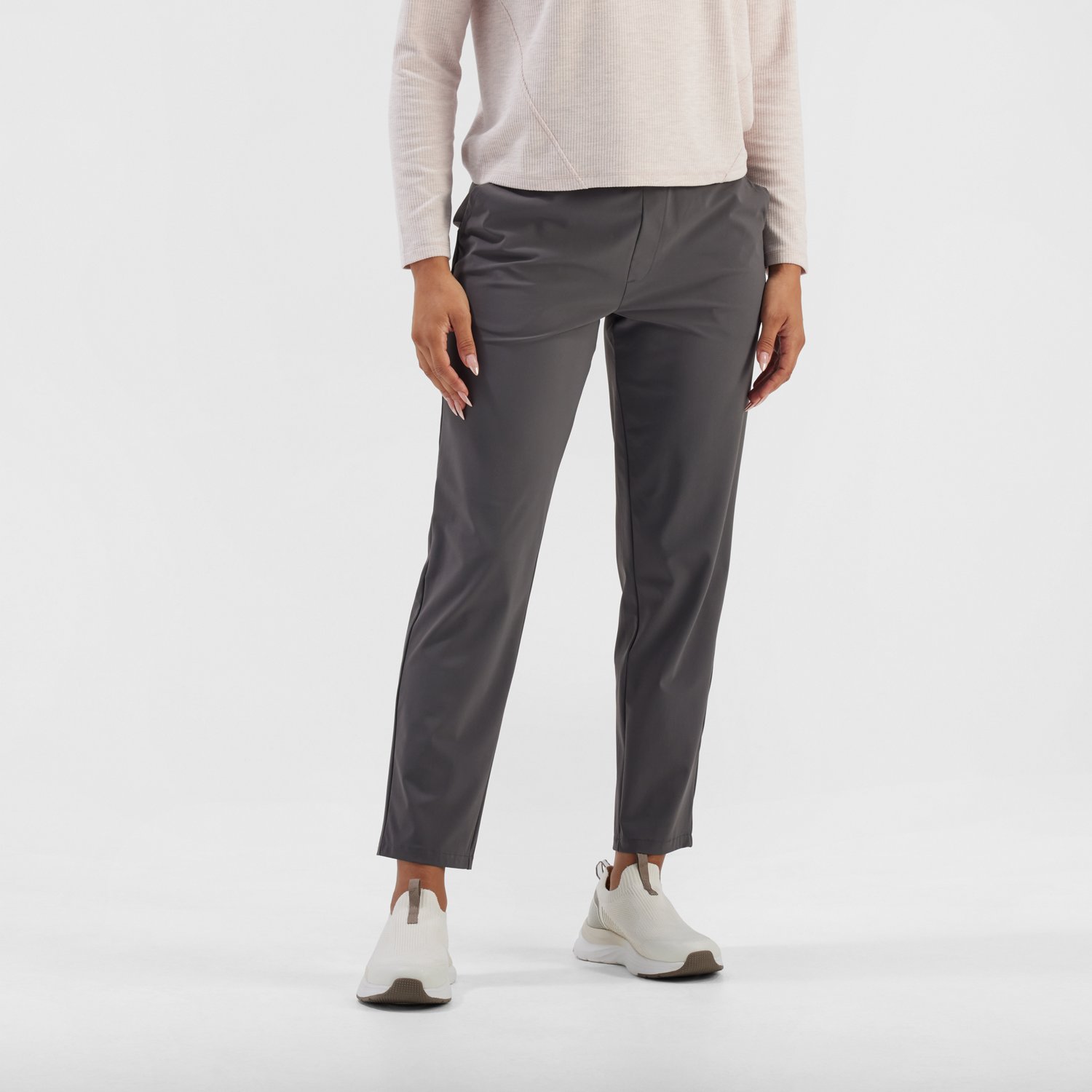 Freely Women's Metro Dawn Stylish Comfortable Everyday Pants, women's full-length lifestyle pants. Crafted from a 76% recycled nylon and 24% spandex blend, these casual pants provide a comfortable, stretchy feel. They feature a classic fit for everyday wear and include four convenient pockets for practical functionality.