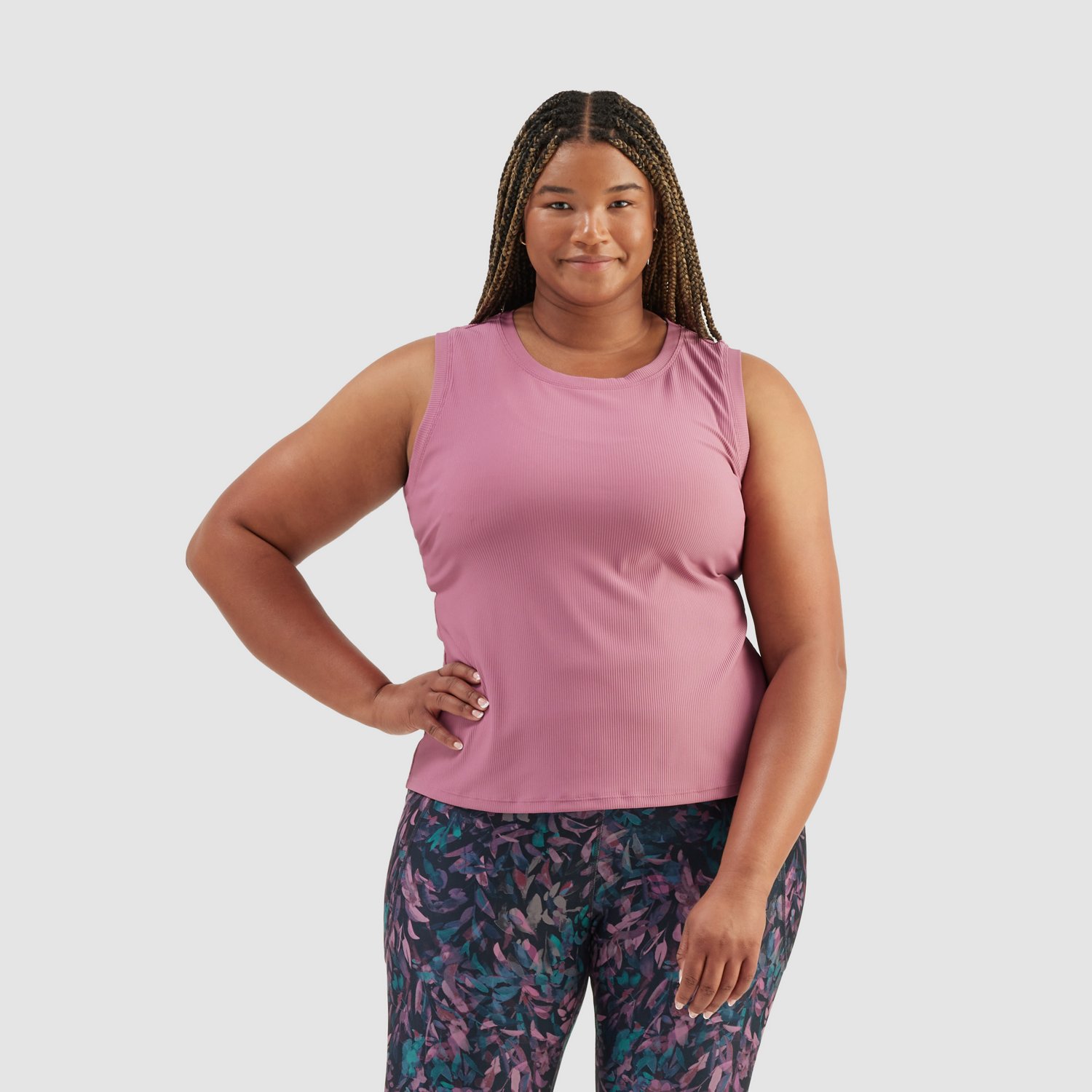 Enhance your wardrobe with the Freely Women's Plus Haven Rib Tank Top. It is made of 83% recycled polyester, and 17% spandex, making it easy to clean. The scoop neckline adds a timeless and versatile touch, and the open back keyhole detail provides a stylish accent. The 27-inch length is ideal for various activities.