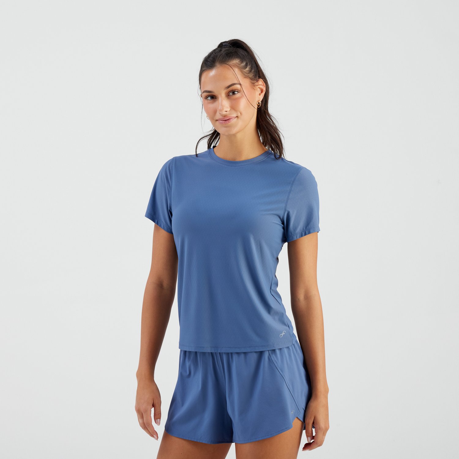 Enjoy comfort and style while you move with the Freely Women's Relay Short Sleeve T-Shirt. The recycled nylon-spandex blend material is stretchy and durable, and the back features a keyhole cutout detail that adds active style.