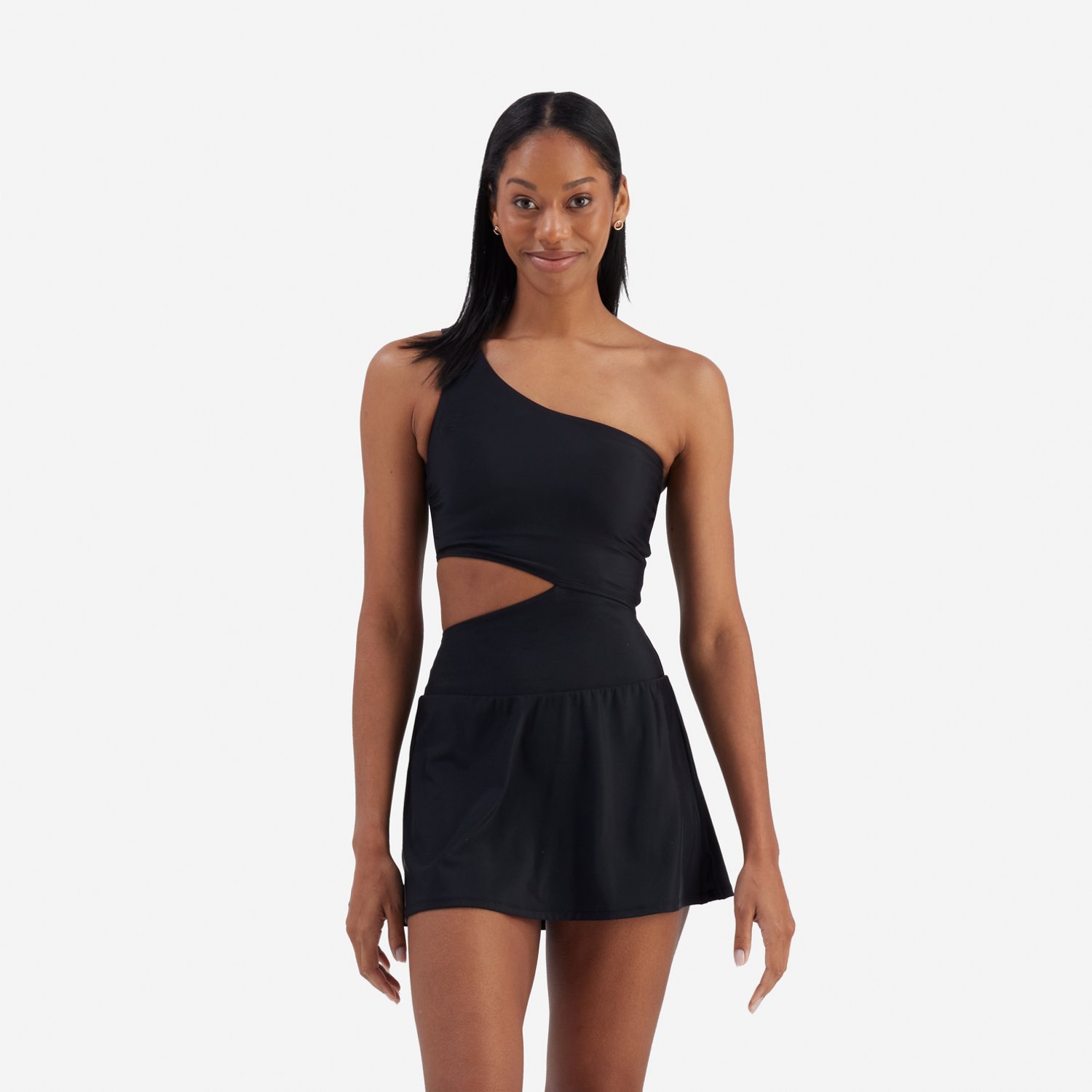 Go for a swim in the Freely Women's Solid Asymmetrical Swimdress. The nylon and spandex material provides a comfortable feel, while the UV protection shields against harmful UV rays.