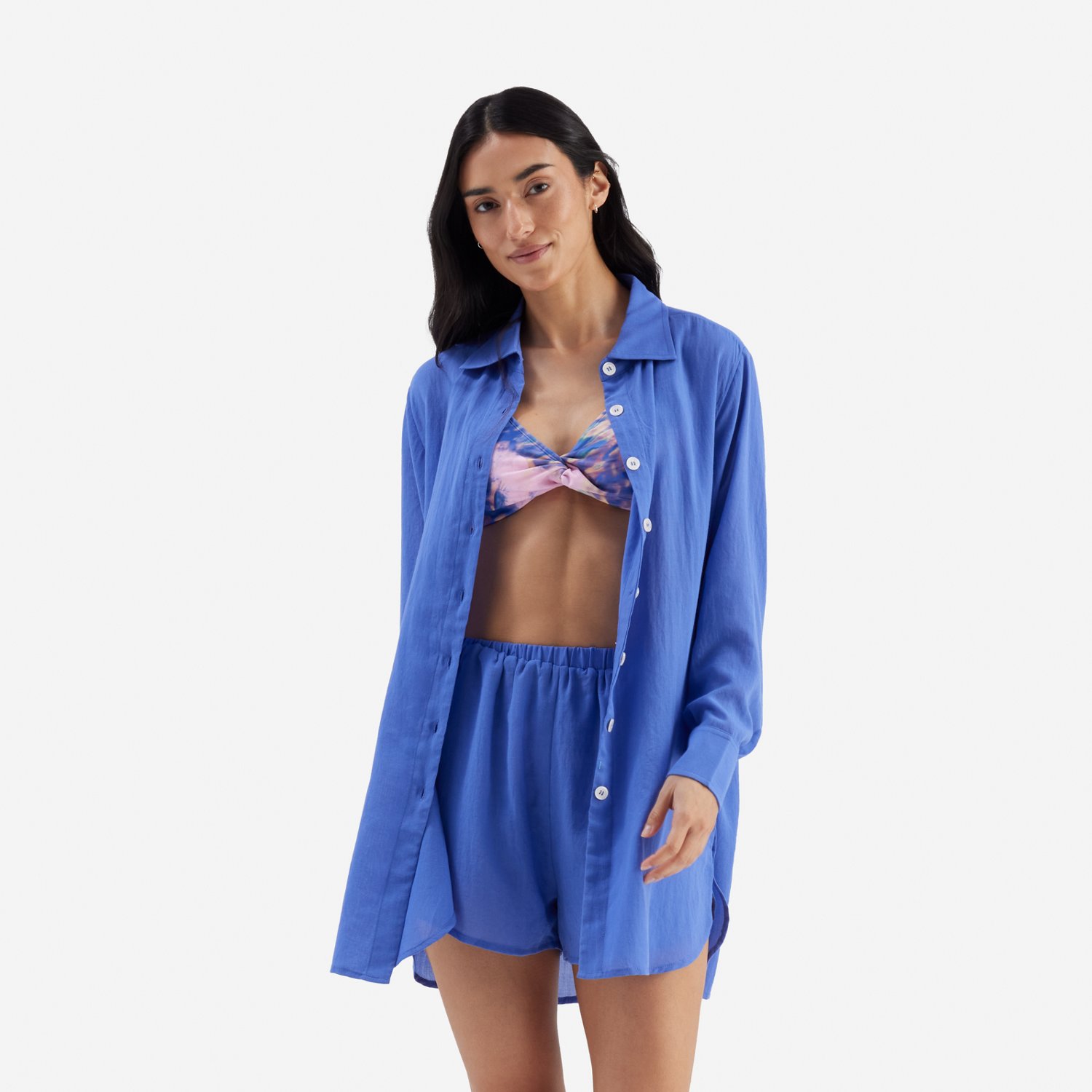 Freely Women's Solid Boyfriend Cover Up Swim Shirt