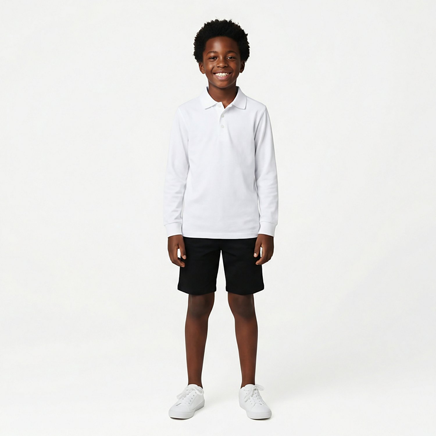 Features and Benefits Made of a breathable blend of 60% cotton and 40% polyester 3-button placket Rib-knit collar Side slits and tail hem add a stylish look Tag-free design Specifications Compression: No Clothing Type: School Uniforms,Casual Shirts Neckline: Collar Sleeve length: Long Sleeve Material technology: Breathable Activity: School,Casual Material: Cotton/Polyester Blend Heat Retention: No Gender: Boys' Size Range: Boys' (8 - 20) Moisture Wicking: No Care: Machine Wash Product Type: Shirts Flame Resistant: No Age Group: Kids' Style: Polos Hood: No Placket: 3-Button What's in the Box French Toast Boys' Long Sleeve Piqué Polo Shirt
