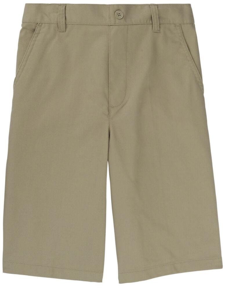 Whether you're finishing up some homework in the quad or relaxing in the dorm with your friends, the French Toast Boys' Pull-On Shorts are a comfortable choice that looks great with any uniform top. Made with Wrinkle No Moreâ„¢ fabric, this knee-length shorts are designed for low-maintenance wear and feature an elastic back waist for a secure fit and easy dressing. With 2 front pockets and 1 back pocket offering convenient storage and a mock fly and button, this shorts are an essential addition to any wardrobe.