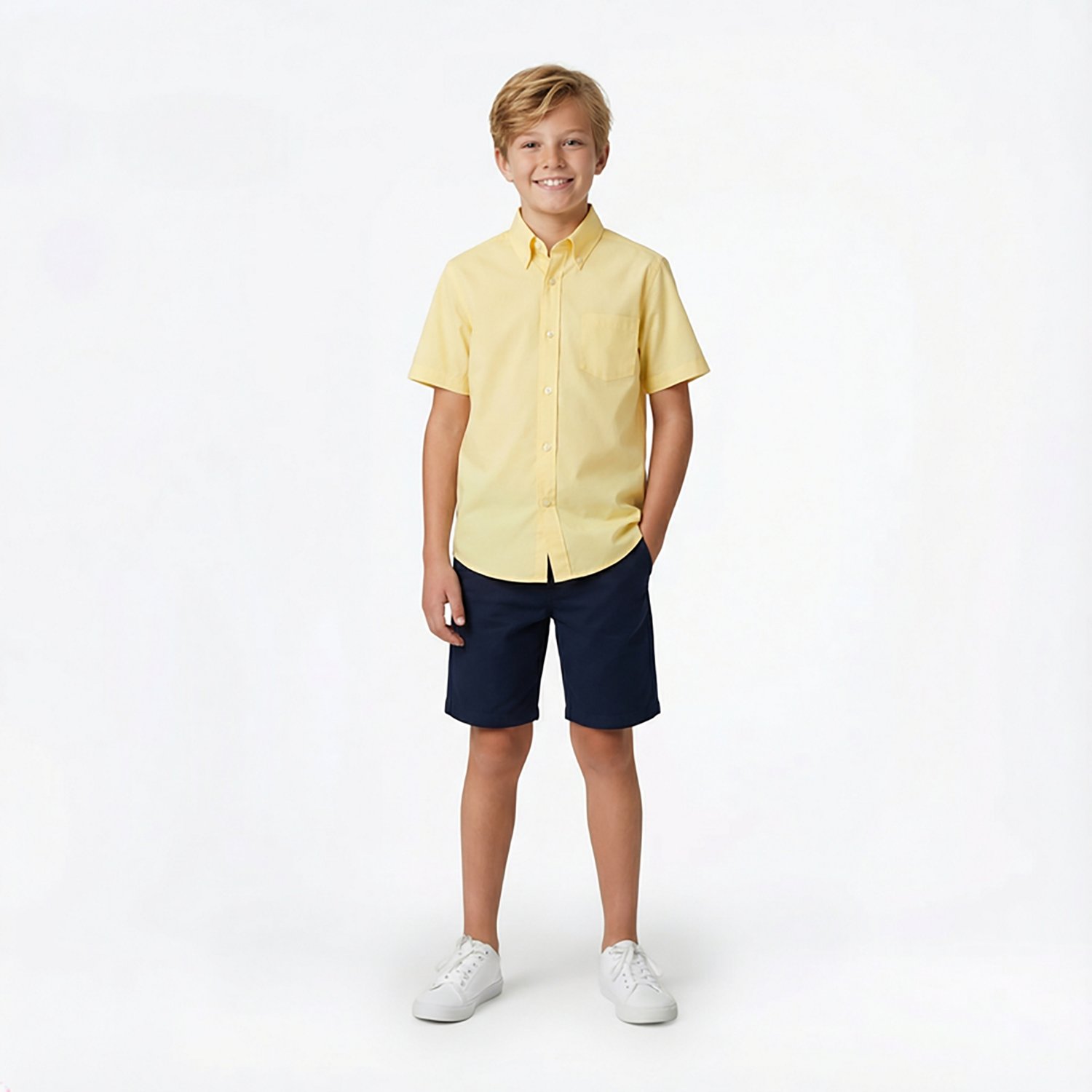 With a classic design, the French Toast Boys' Short Sleeve Dress Shirt is made of a soft, touchable blend of cotton and polyester with Wrinkle No More technology to keep you looking sharp all day long. The expandable collar helps ensure you stay comfortable, even during long days.