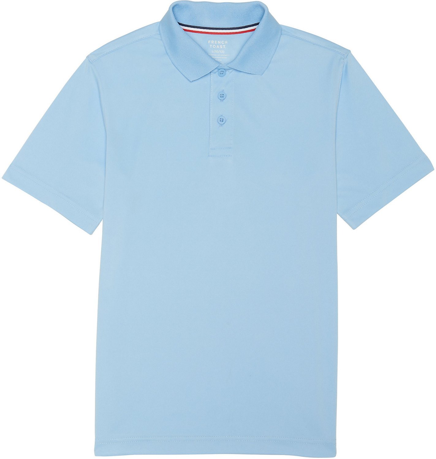 Keep the French Toast Boys' Sport Polo Shirt in his closet to make sure he looks stylish at school. The polo is made of 100% polyester interlock to allow comfortable wear and is designed with a wicking finish to prevent the buildup of moisture and sweat. The 3-button placket features chalk buttons for a fashionable touch.