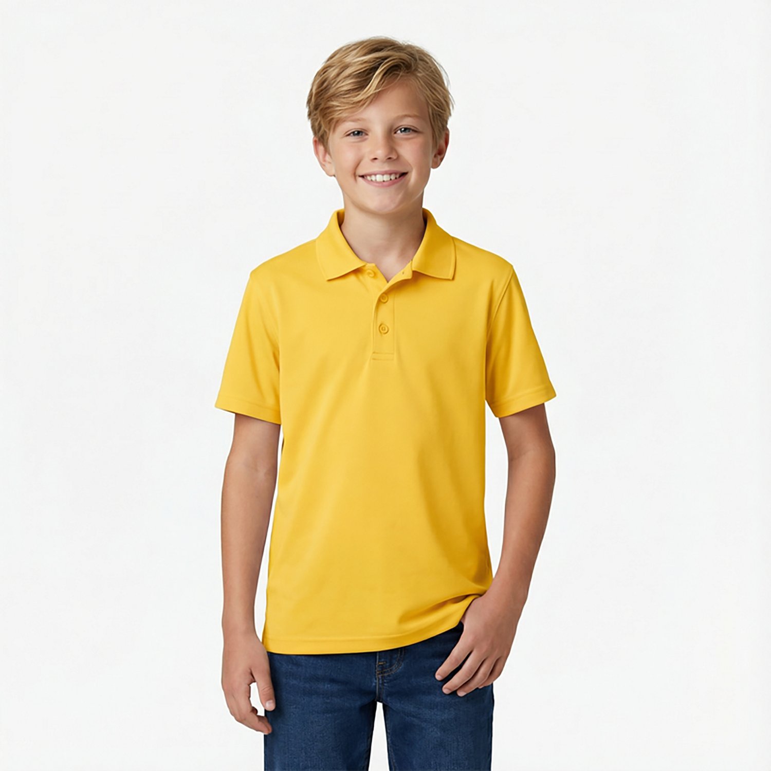Keep the French Toast Boys' Sport Polo Shirt in his closet to make sure he looks stylish at school. The polo is made of 100% polyester interlock to allow comfortable wear and is designed with a wicking finish to prevent the buildup of moisture and sweat. The 3-button placket features chalk buttons for a fashionable touch.