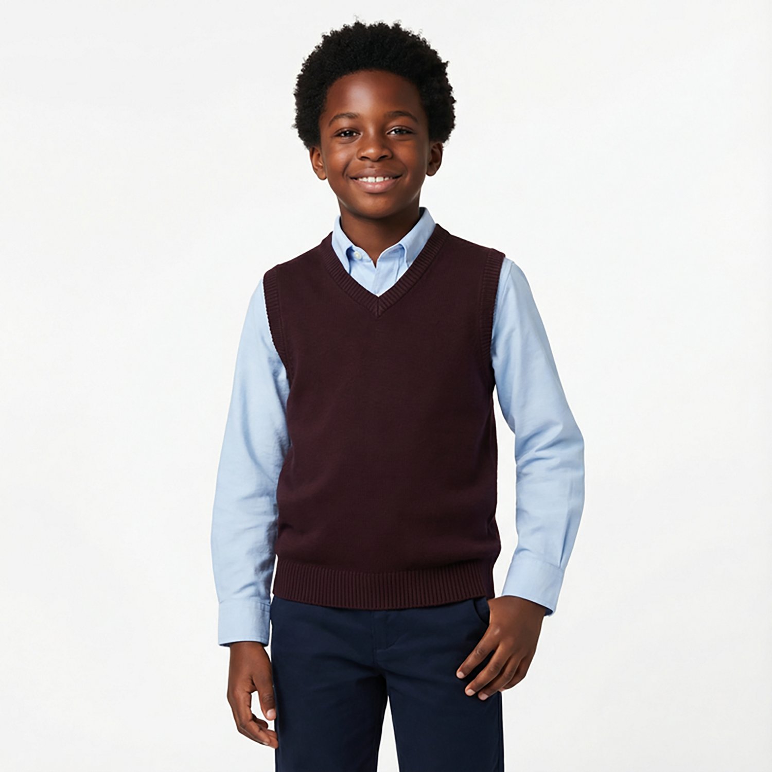 When it comes to picking out this year's school uniforms, choose the French Toast Boys' V-neck Sweater Vest. This sweater vest is made with 100% acrylic for durability and warmth, and is antipilling for a longer life. The cuffs and V-neck have 2x2 ribbing for comfort, while the hem has 1x1 ribbing.