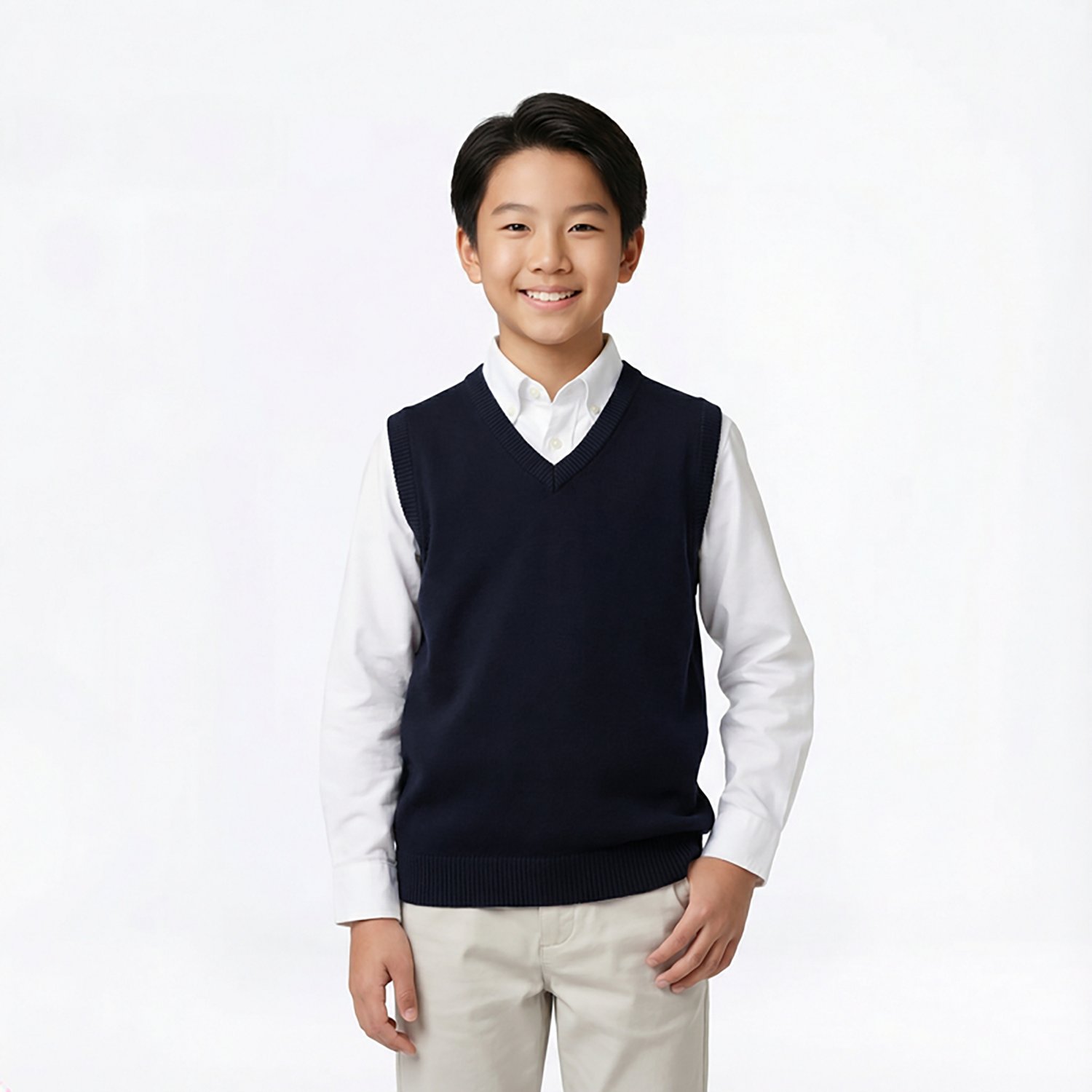 When it comes to picking out this year's school uniforms, choose the French Toast Boys' V-neck Sweater Vest. This sweater vest is made with 100% acrylic for durability and warmth, and is antipilling for a longer life. The cuffs and V-neck have 2x2 ribbing for comfort, while the hem has 1x1 ribbing.