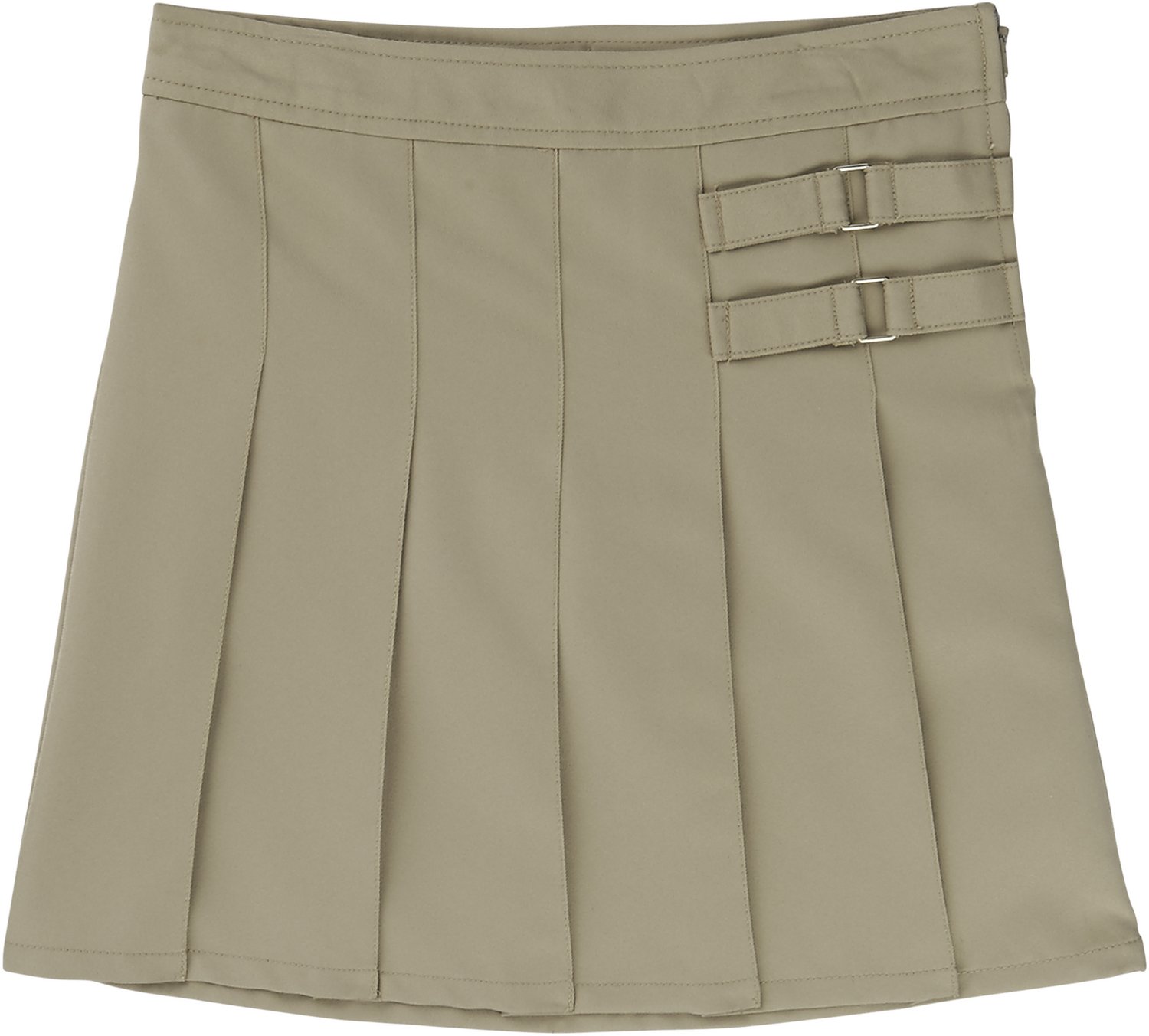 With a great blend of form and function, the French Toast Girls' 2 Tab Scooter Skirt provides you with a classic addition to your wardrobe. The built-in knit short gives you increased coverage, while the pleats and twin-buckle design add a stylish, attractive accent that complements just about any outfit.