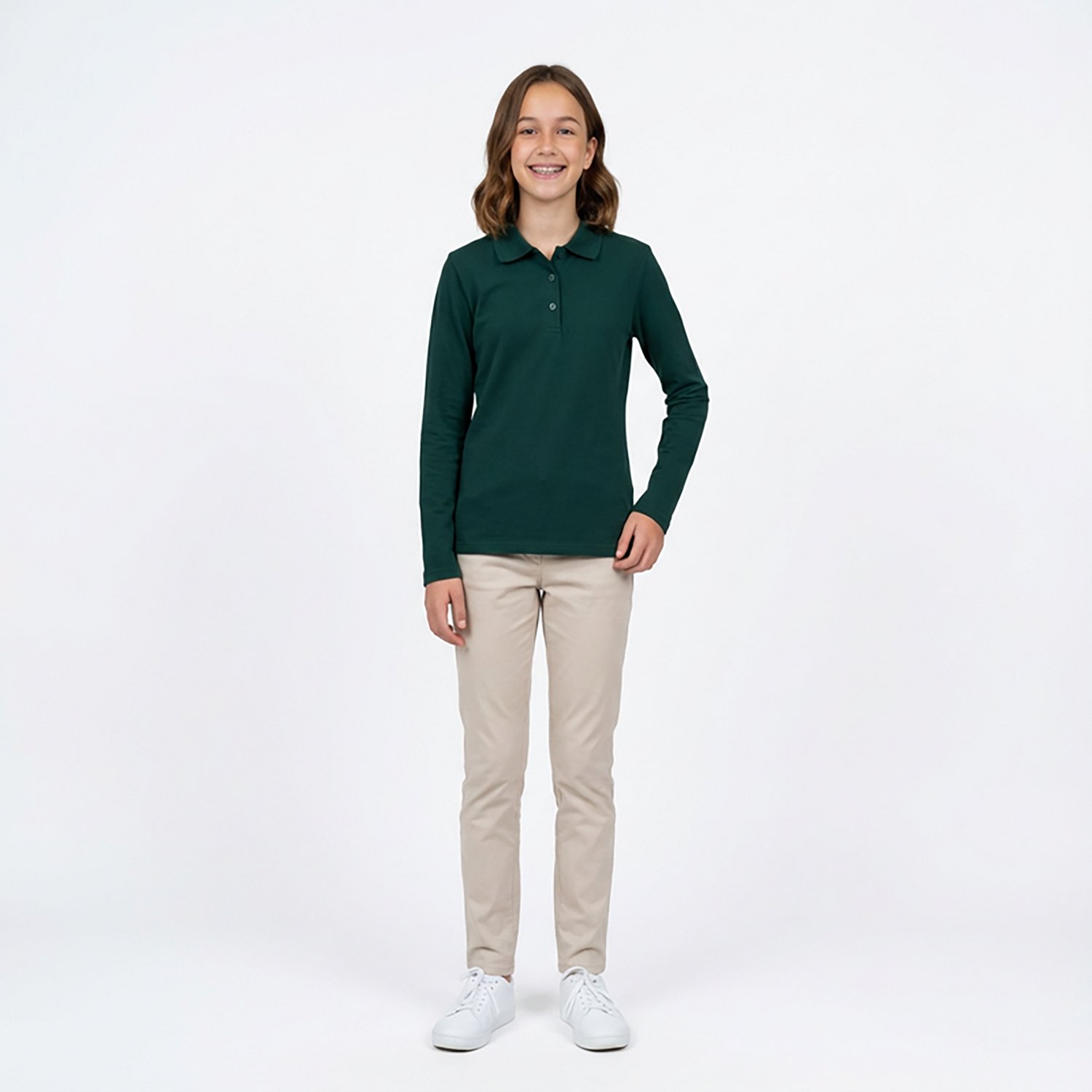 French Toast Girls' Long Sleeve Interlock Knit Polo with Picot Collar