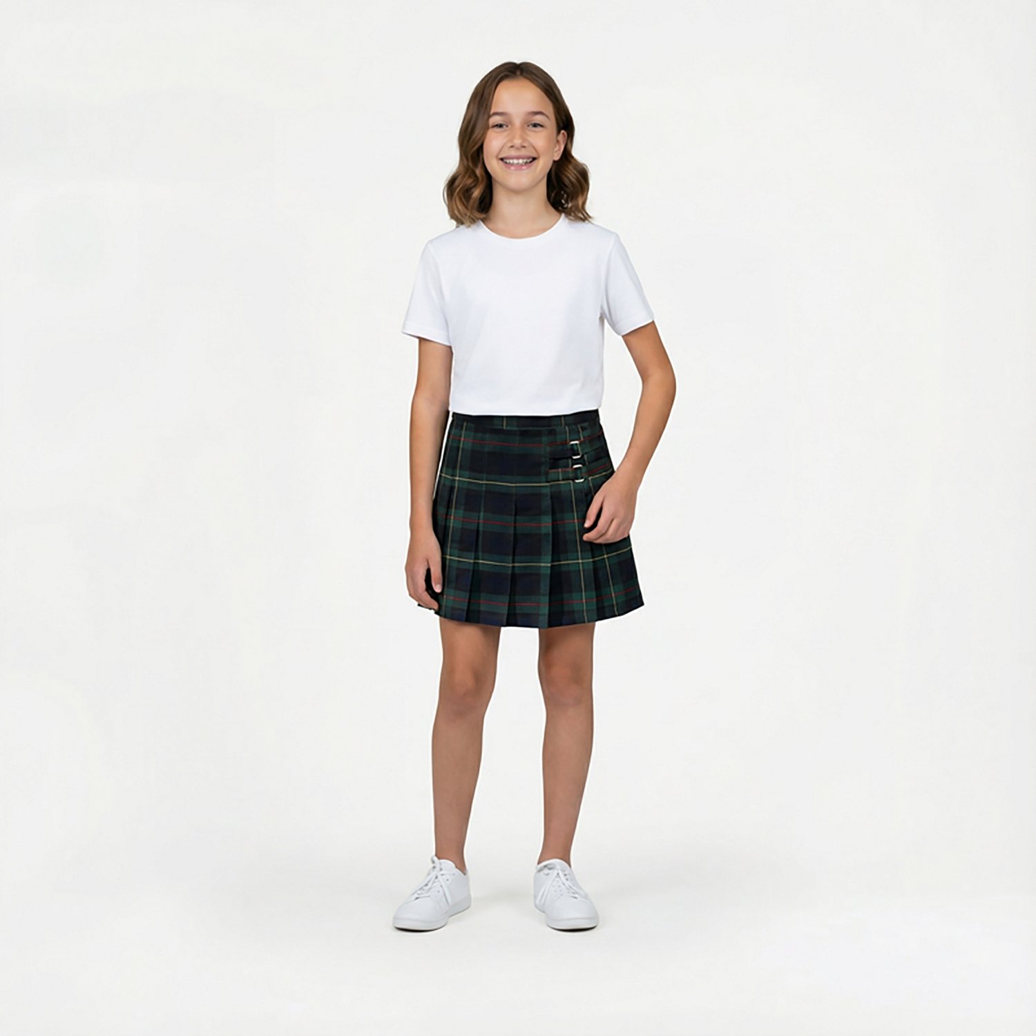 Stylize your everyday look with the French Toast Girls' Plaid 2-Tab Uniform Scooter, which features an allover pattern and pleats down the front. The built-in shorts provide comfort, and the adjustable waistband helps ensure a great fit.