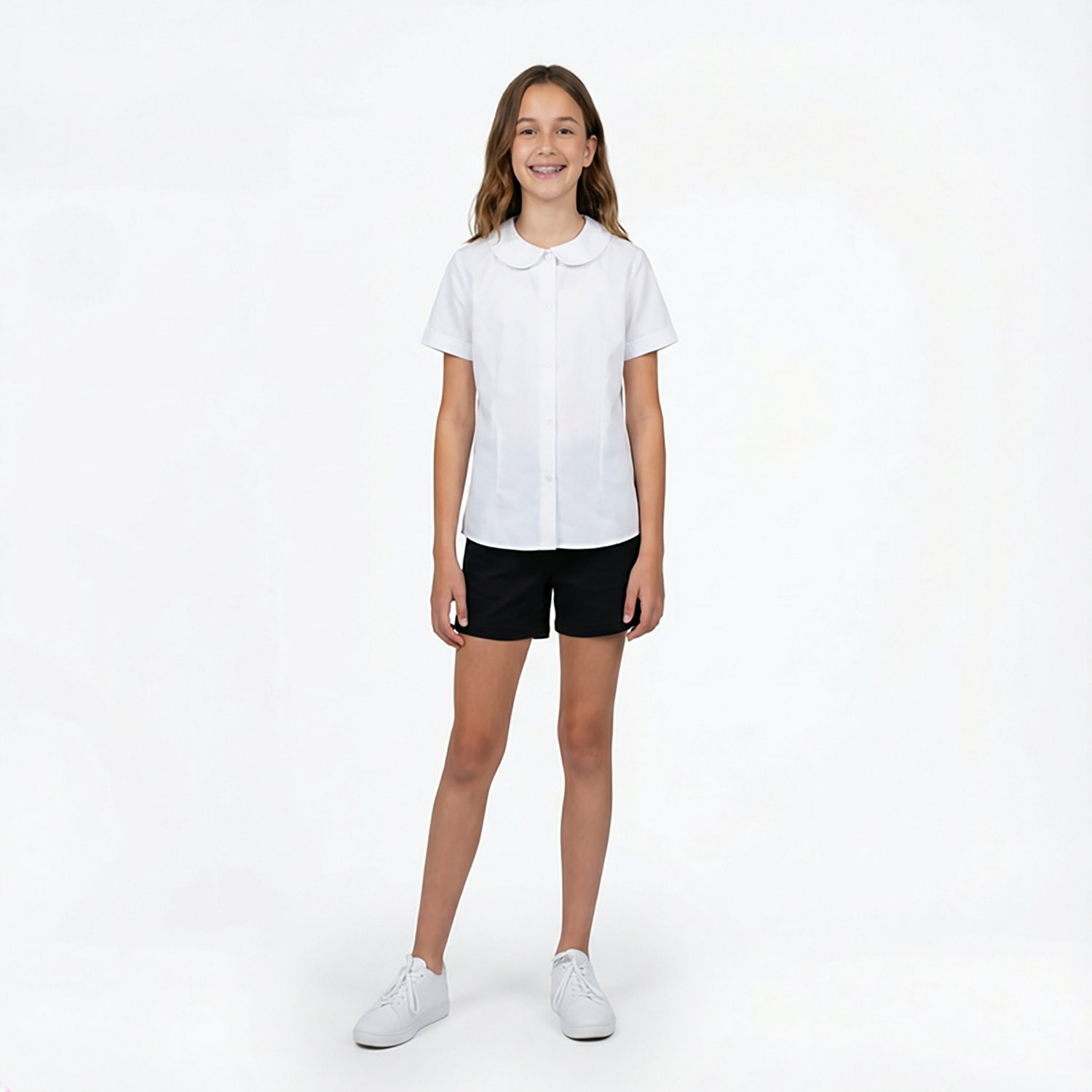 All the features in the French Toast Girls' Plus Size Modern Peter Pan Blouse combine to create a sweet, feminine shirt she'll be excited to wear all day long. It has a button-down design with back darts to keep the fit slim. The Peter Pan collar adds a classic touch to the overall structure, and the Wrinkle No Moreâ„¢ fabric will keep her looking polished.