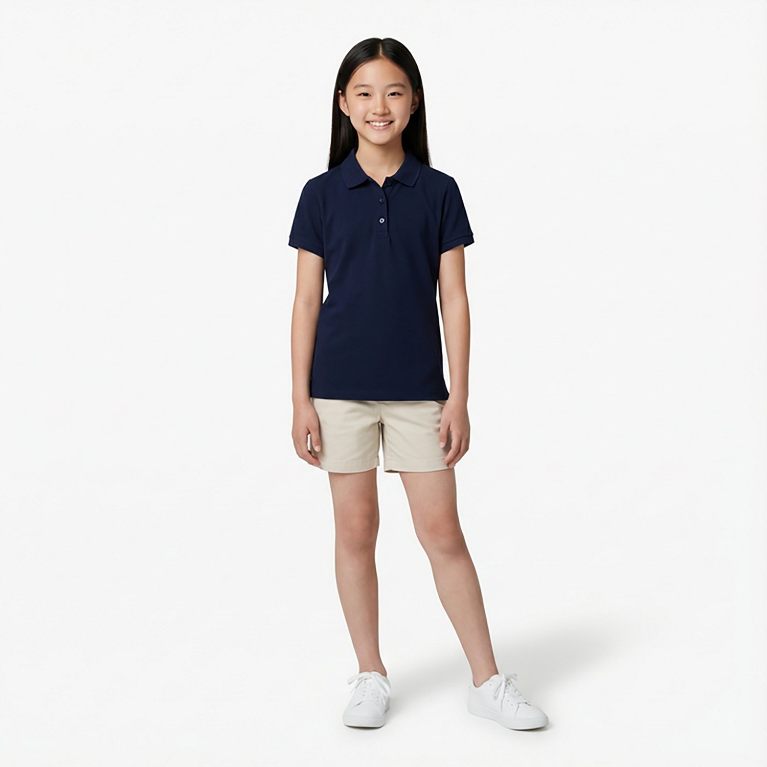 The standard polo shirt is a classic for good reason. She'll look put together and ready for anything with the French Toast Girls' Short Sleeve Stretch Pique Polo Shirt. This shirt has short sleeves with gathered fabric for a feminine look. It has a 3-button placket and side slits for breathability. Wrinkle No Moreâ„¢ technology works to keep the shirt looking polished, while the tag-free construction prevents irritation.