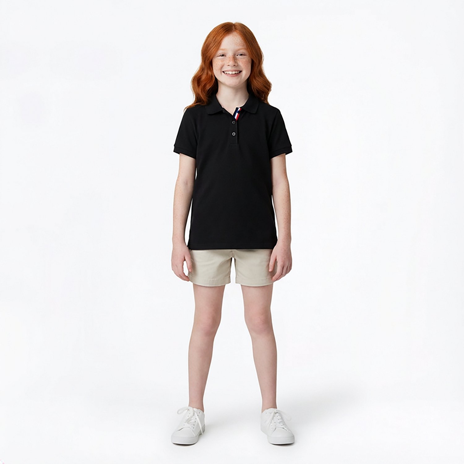 The classic polo gets a girlish update in the French Toast Girls' Polo Shirt with Picot Collar. This shirt has short sleeves and a slim fit for an all around comfortable design. The picot collar and flower buttons add a stylish touch.