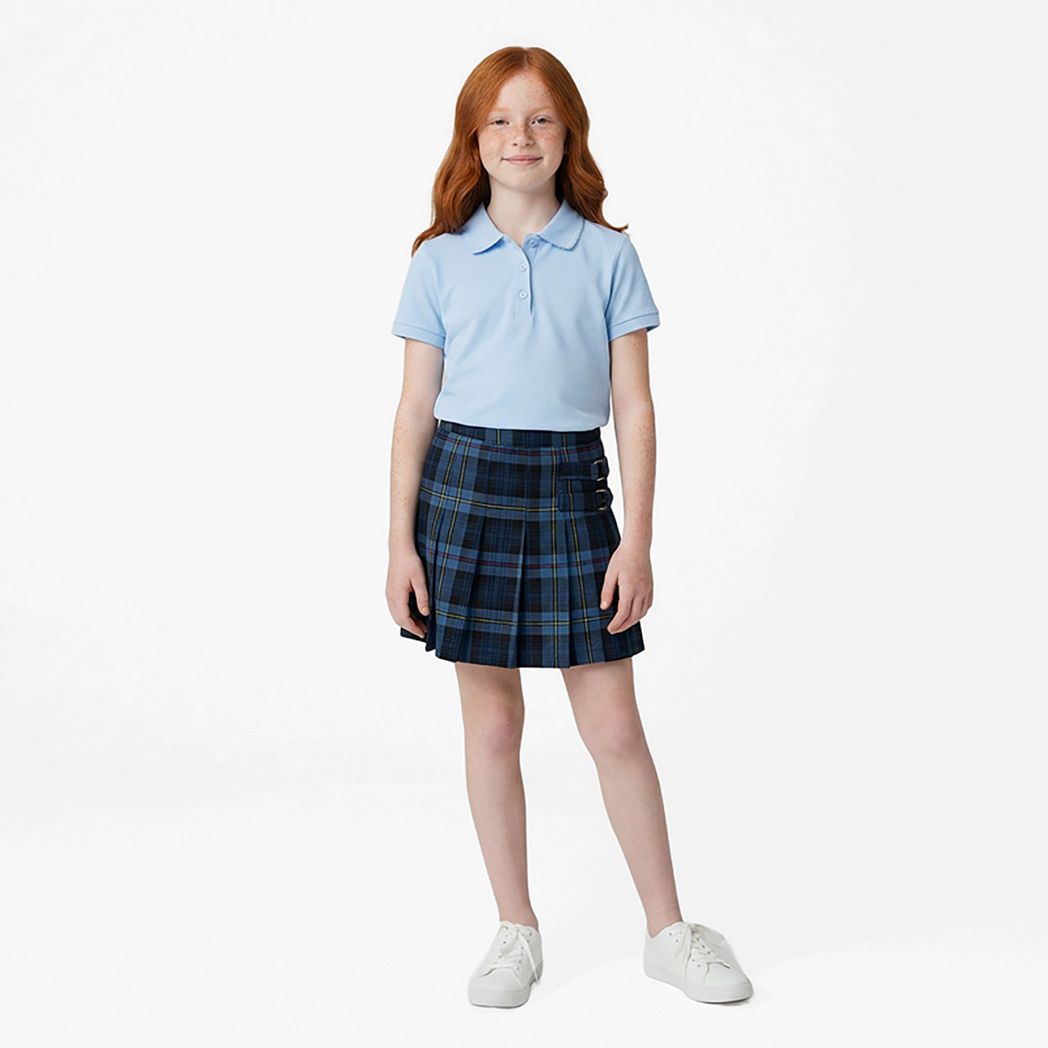 The classic polo gets a girlish update in the French Toast Girls' Polo Shirt with Picot Collar. This shirt has short sleeves and a slim fit for an all around comfortable design. The picot collar and flower buttons add a stylish touch.