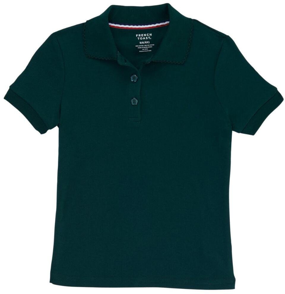 The classic polo gets a girlish update in the French Toast Girls' Polo Shirt with Picot Collar. This shirt has short sleeves and a slim fit for an all around comfortable design. The picot collar and flower buttons add a stylish touch.