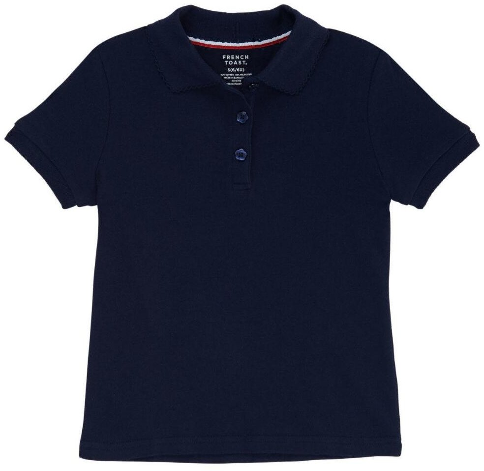 The classic polo gets a girlish update in the French Toast Girls' Polo Shirt with Picot Collar. This shirt has short sleeves and a slim fit for an all around comfortable design. The picot collar and flower buttons add a stylish touch.