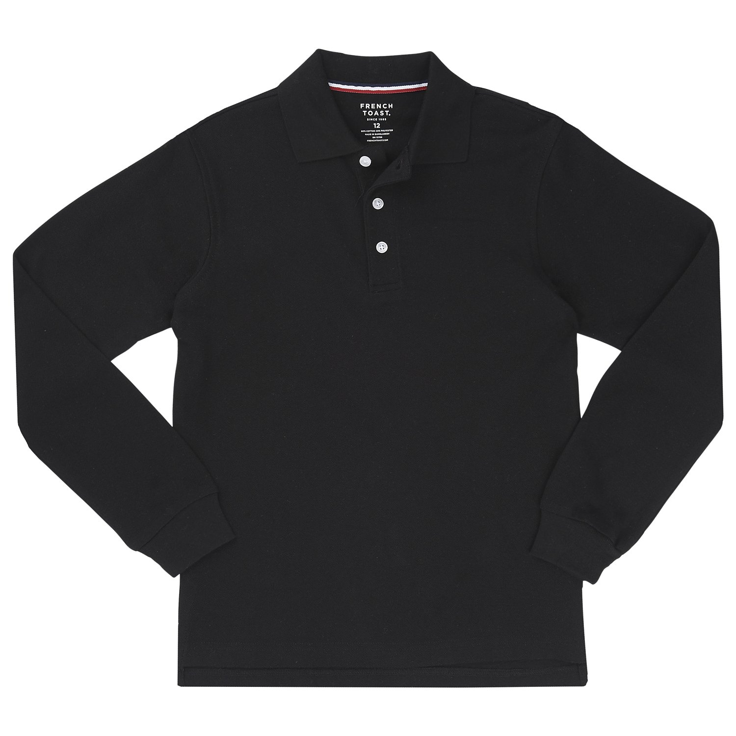 Look stylish and stay warm in this French Toast Toddler Boys' Long Sleeve Pique Polo Shirt. The long sleeves offer plenty of coverage, while the cotton-polyester blend material lends a comfortable feel. Featuring a tag-free design, you'll be able to focus on your studies.