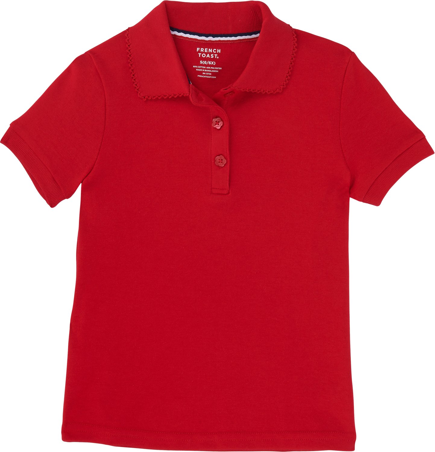 With the French Toast Toddler Girls' Short Sleeve Picot Collar Polo Shirt, you'll look stylish and stay comfortable throughout the school day. Made from cotton and polyester, the polo shirt offers a soft feel, while the picot collar adds a stylish touch.