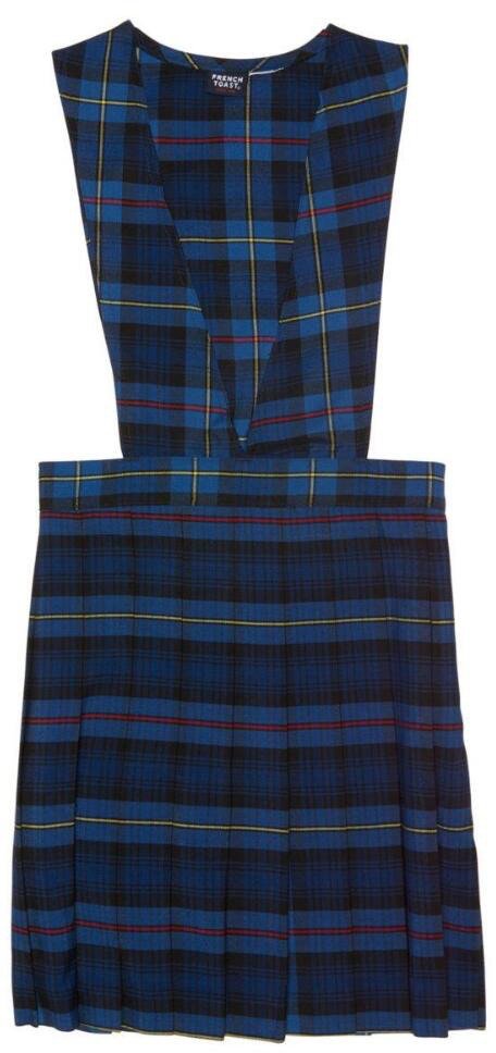 Slip the French Toast Toddler Girls' V-neck Pleated Plaid Jumper on over a long-sleeve blouse and tights and you have the classic, everyday school uniform. This jumper is made with 100% polyester fabric and pleating all around the skirt for some extra flair. The elastic waistband, zipper and button closure secure the jumper.