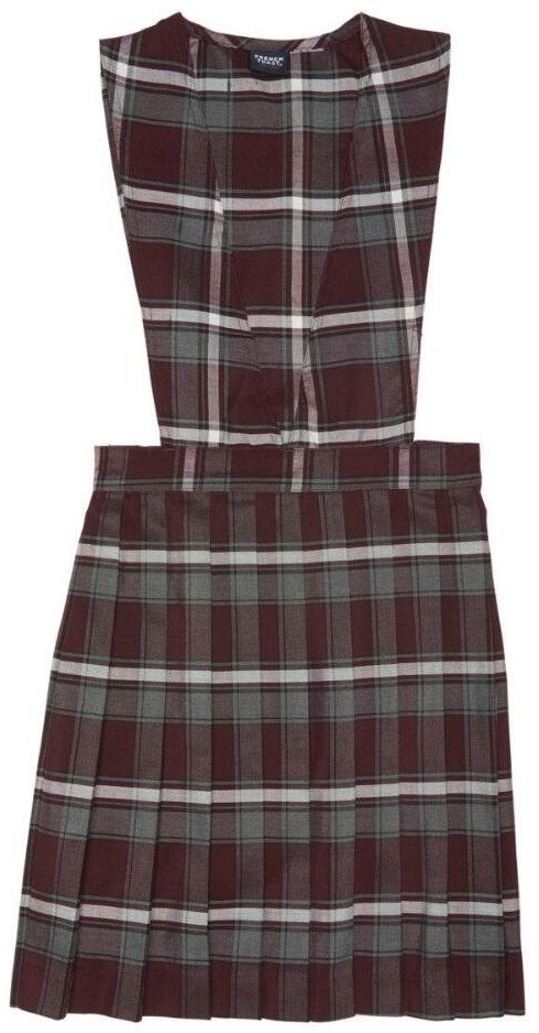 Slip the French Toast Toddler Girls' V-neck Pleated Plaid Jumper on over a long-sleeve blouse and tights and you have the classic, everyday school uniform. This jumper is made with 100% polyester fabric and pleating all around the skirt for some extra flair. The elastic waistband, zipper and button closure secure the jumper.