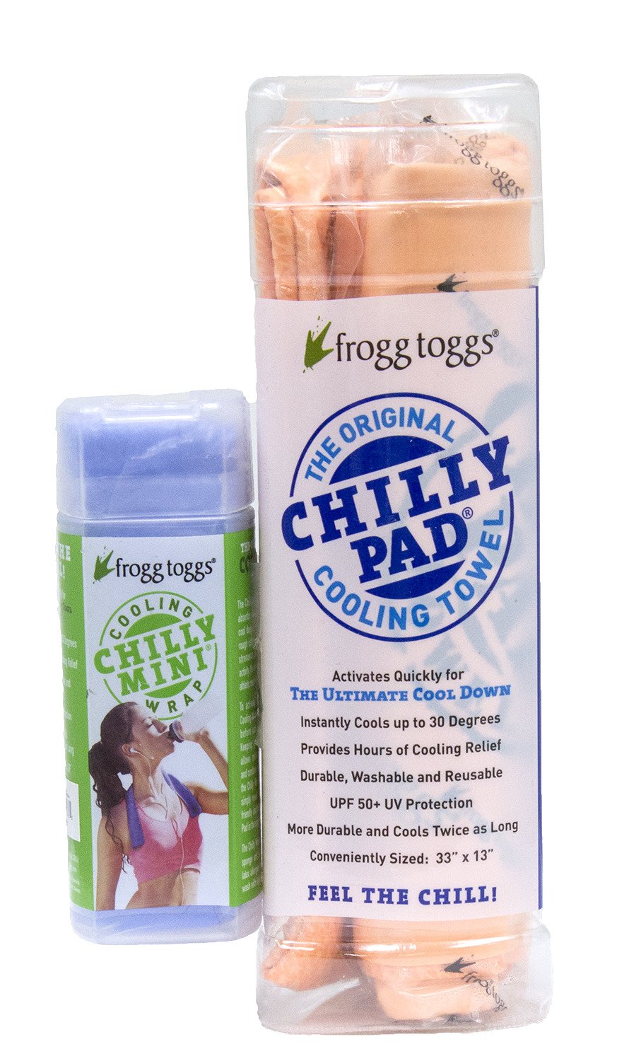 Work out or beat the heat on a hot day with the frogg toggs® Chilly Pad Combo. Made of an evaporative material that cools up to 30°, this set includes 1 Chilly Pad and 1 Chilly Mini towel to offer cool relief. And with their quick-activating design, you'll be able to chill out as soon as you break a sweat.
