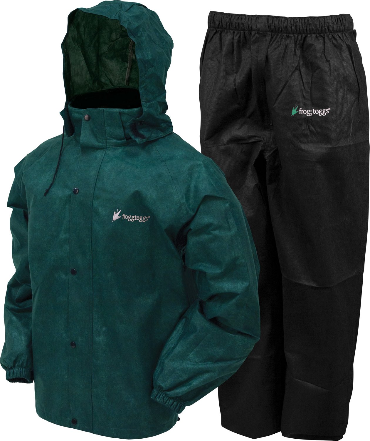 Enjoy your outdoor activities without fear of wet weather while wearing this frogg toggs Men's All Sport Rain Suit, which includes a waterproof jacket with a full-zip closure, an adjustable hood and an elongated rear cape to help shield against the elements. The waterproof pants have a straight-leg cut with an elastic waistband for a snug, comfortable fit.