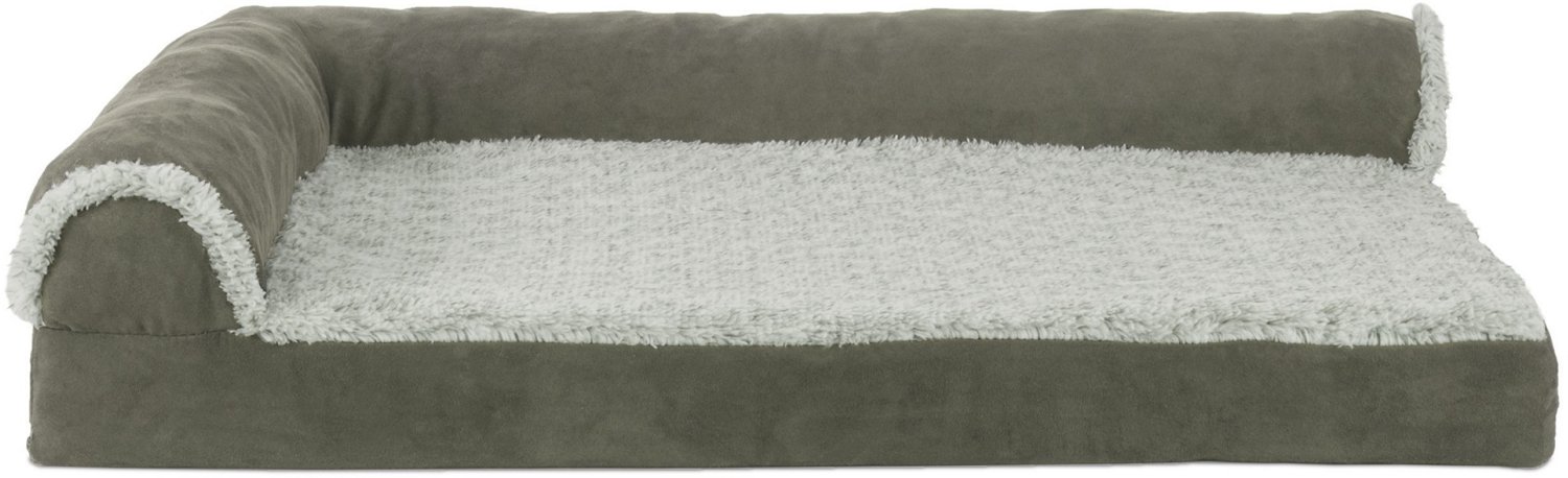 Treat your furry pal to comfort whenever they sleep on the FurHaven Deluxe Suede Chaise Lounge Medium Dog Bed. The faux fur and suede cover supplies an ultrasoft, plush feel. The orthopedic filling and L-shaped bolsters offer support, while the 2-tone design provides a sleek, soothing appearance. Designed for breeds up to 35 pounds.