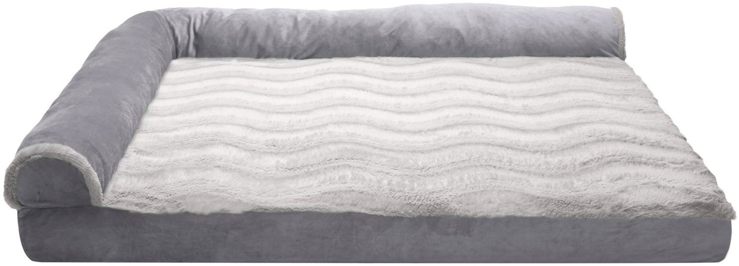Treat your furry pal to comfort whenever they sleep on the FurHaven Deluxe Wave Fur Chaise Lounge Jumbo Pet Bed. The faux wave fur and velvet cover supplies an ultrasoft, plush feel. The orthopedic filling and L-shaped bolsters offer support, while the stylish design provides a sleek, soothing appearance for your pet to enjoy. Designed for breeds up to 95 pounds.
