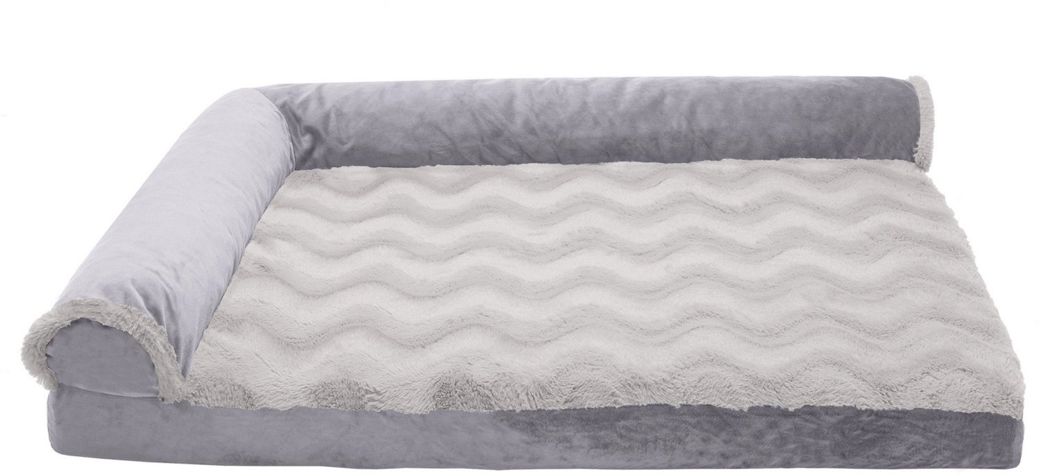 Treat your furry pal to comfort whenever they sleep on the FurHaven Deluxe Wave Fur Chaise Lounge Large Pet Bed. The faux fur and velvet cover supplies an ultrasoft, plush feel. The orthopedic filling and L-shaped bolsters offer support, while the stylish design provides a sleek, soothing appearance for your pet to enjoy. Designed for breeds up to 55 pounds.