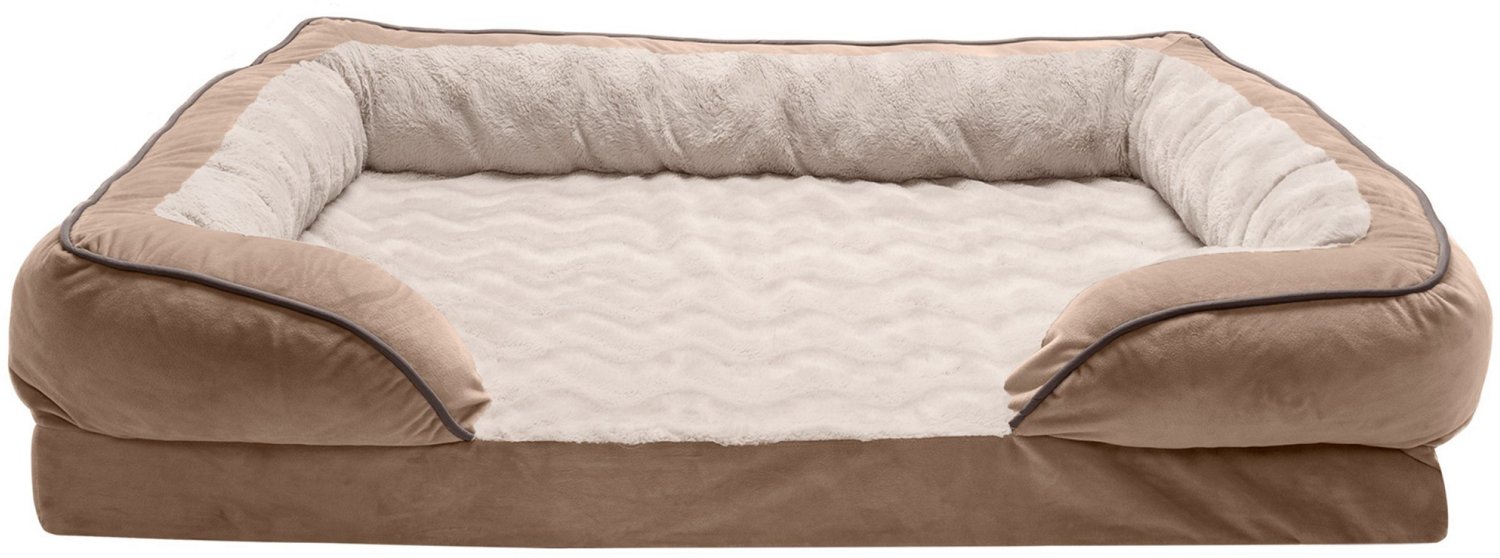 Give your dog a place to rest with the FurHaven Jumbo Velvet Waves Pet Dog Bed. The bed is designed to support large dogs up to 95 pounds, and it's made with convoluted orthopedic foam filling that provides support for joints and reduces pain is various pressure points.