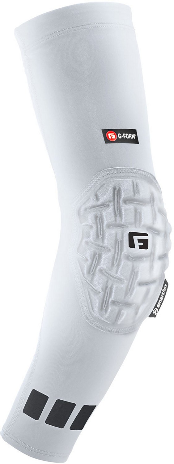 Support and stabilize your arm with the G-Form Pro Team Arm Sleeve. Made from a blend of nylon and spandex, the compression fabric fits snugly for a secure fit throughout the game. SmartFlex material ventilates heat as you play to keep you cool. An external layer allows low-friction sliding and hardens on impact for an added layer of protection.